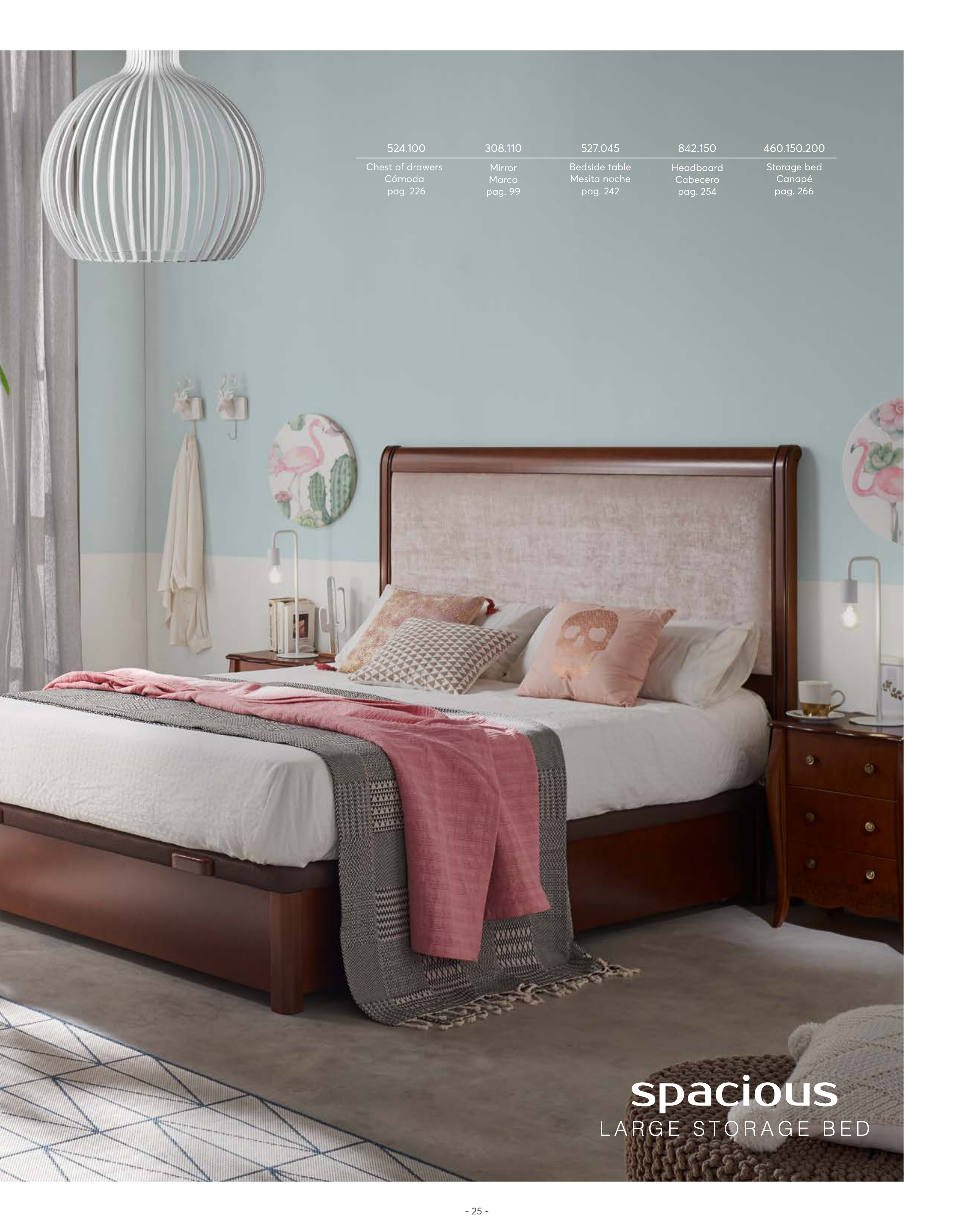 spacious L A R G E S T O R A G E B E D 460.150.200 Storage bed Canapé pag. 266 527.045 Bedside table Mesita noche 842.150 Headboard Cabecero pag. 242 pag. 254 524.100 Chest of drawers Cómoda 308.110 Mirror Marco pag. 226 pag. 99 - 25 -