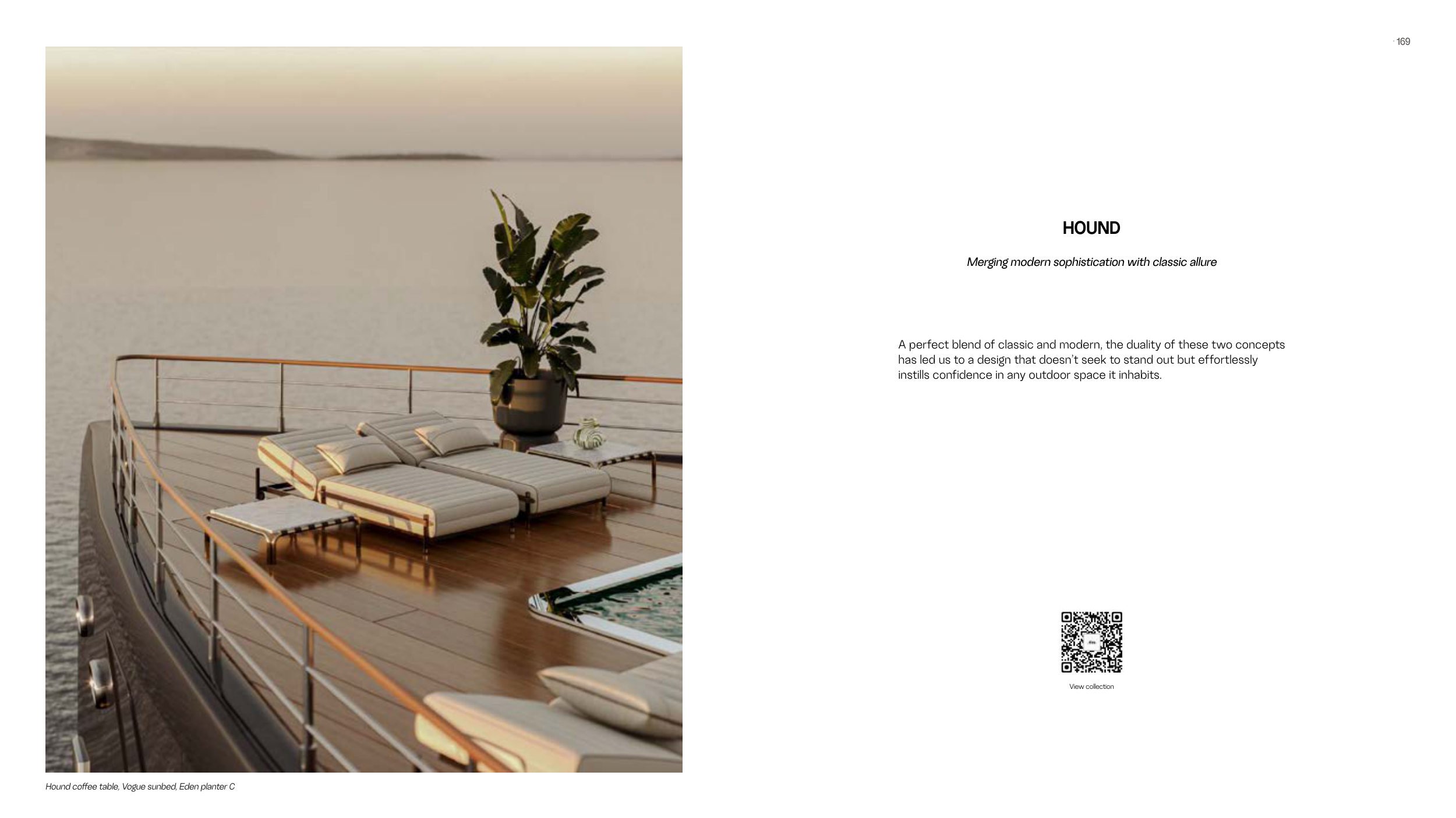 Hound coffee table, Vogue sunbed, Eden planter C