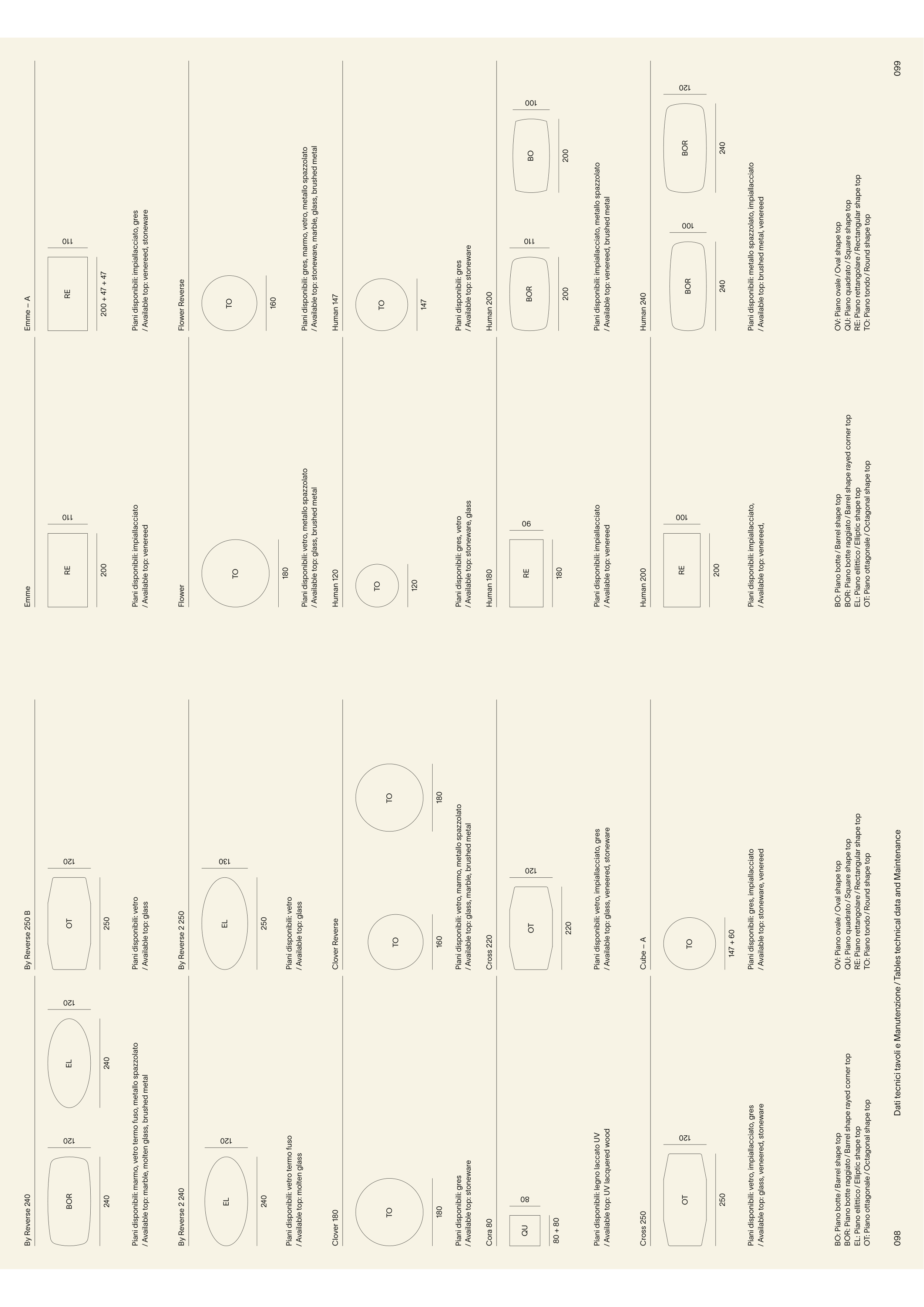 Dati tecnici tavoli e Manutenzione ⁄ Tables technical data and Maintenance