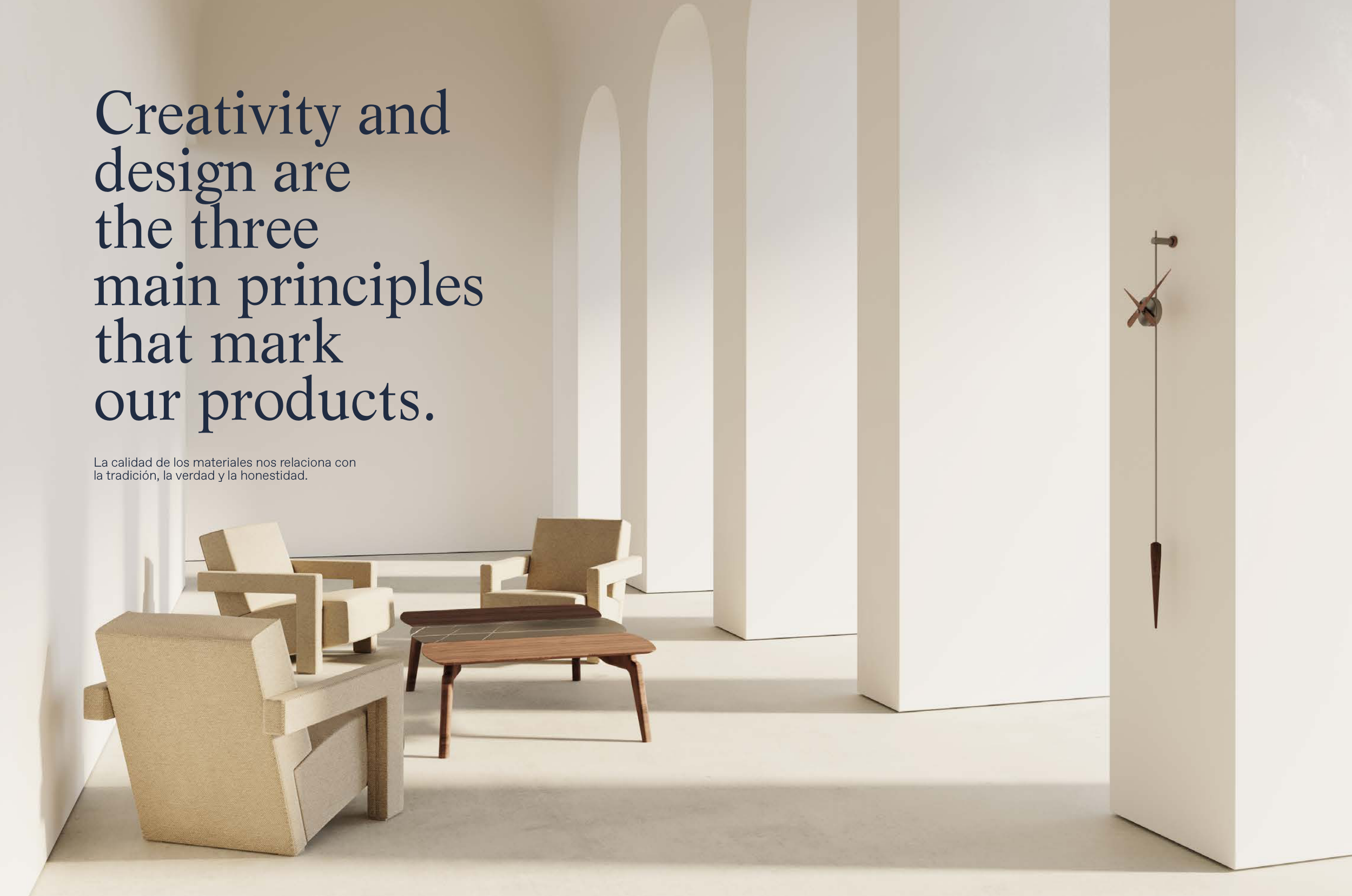 300 301 Creativity and design are the three main principles that mark our products. La calidad de los materiales nos relaciona con la tradición, la verdad y la honestidad.