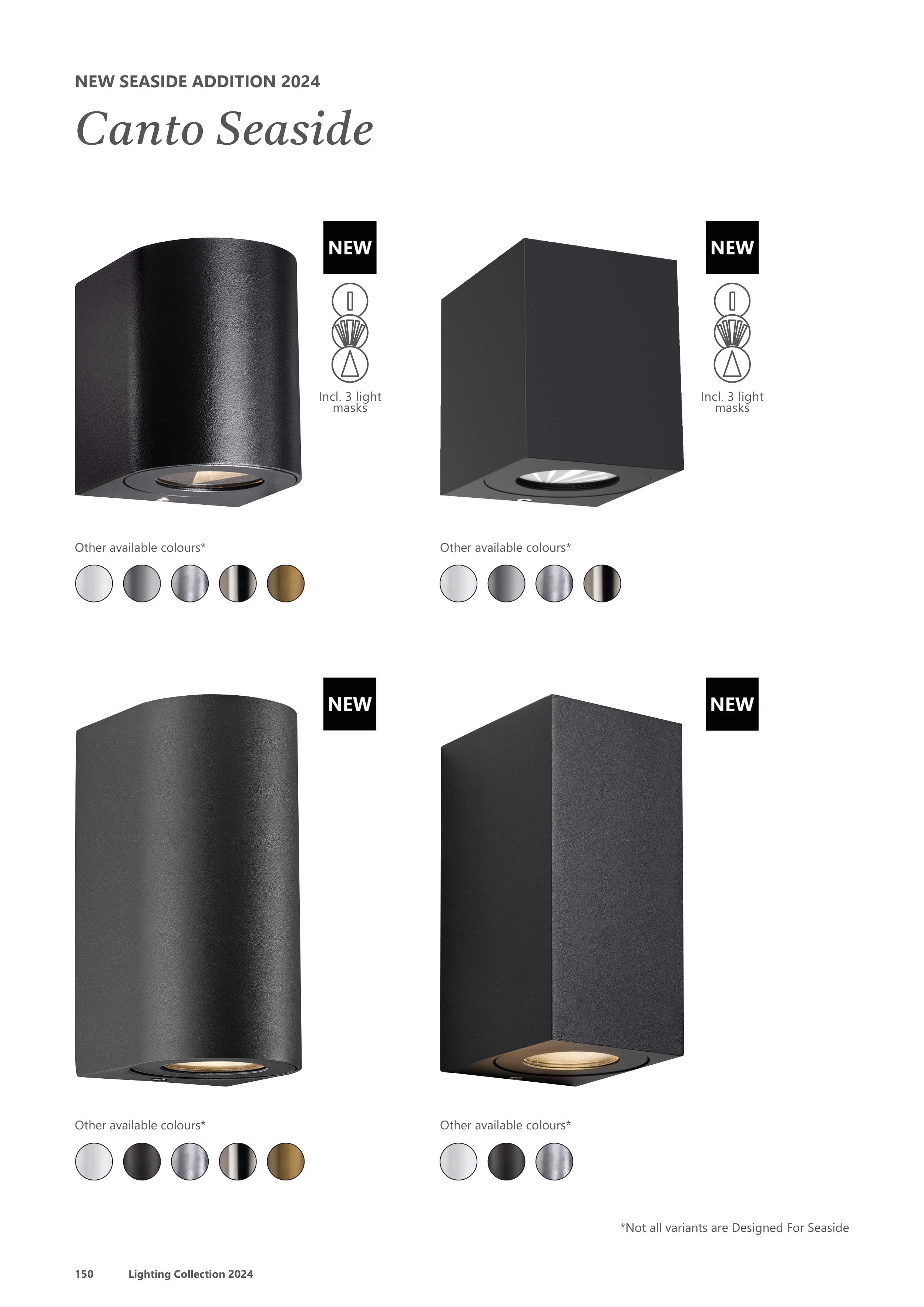Lighting Collection 2024 150 Other available colours* Other available colours* Other available colours* Other available colours* *Not all variants are Designed For Seaside Incl. 3 light masks Incl. 3 light masks Canto Seaside NEW SEASIDE ADDITION 2024