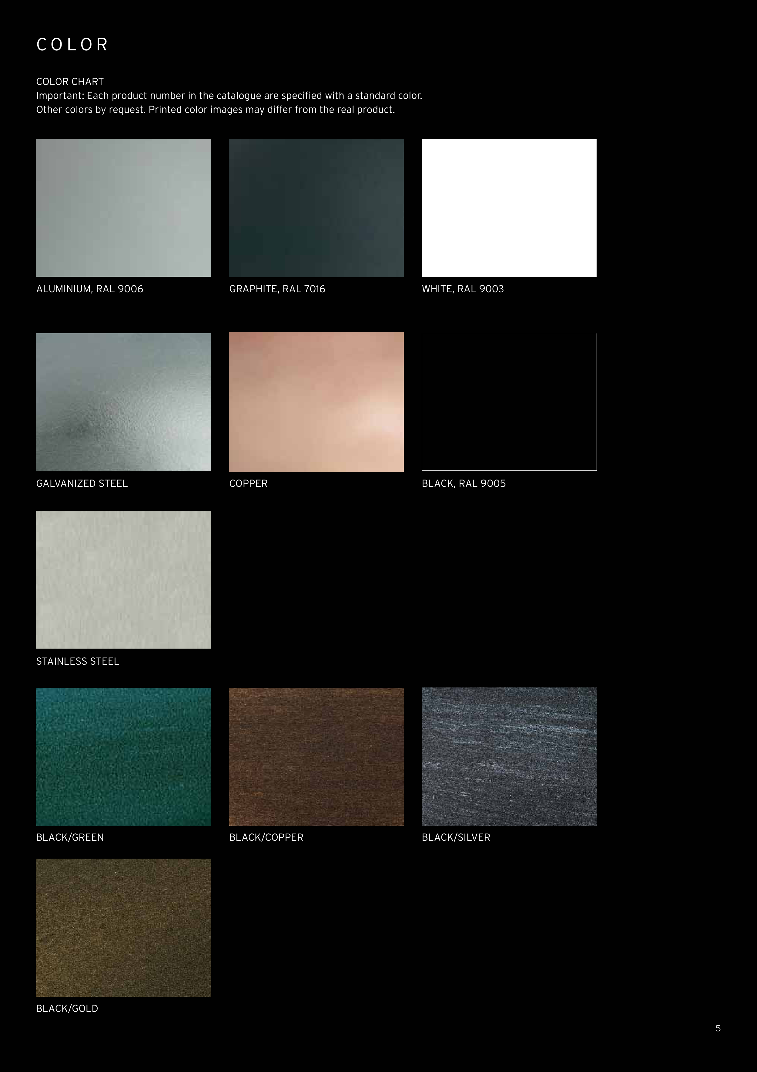 Important: Each product number in the catalogue are specifi ed with a standard color.