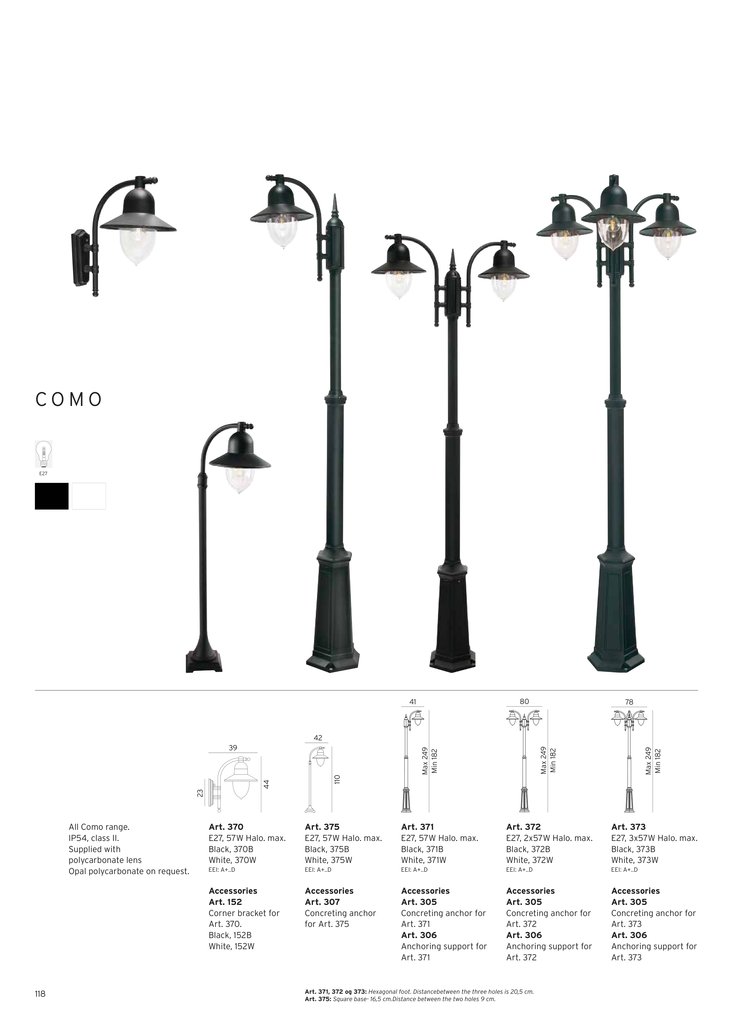 Art. 371, 372 og 373: Hexagonal foot. Distancebetween the three holes is 20,5 cm.