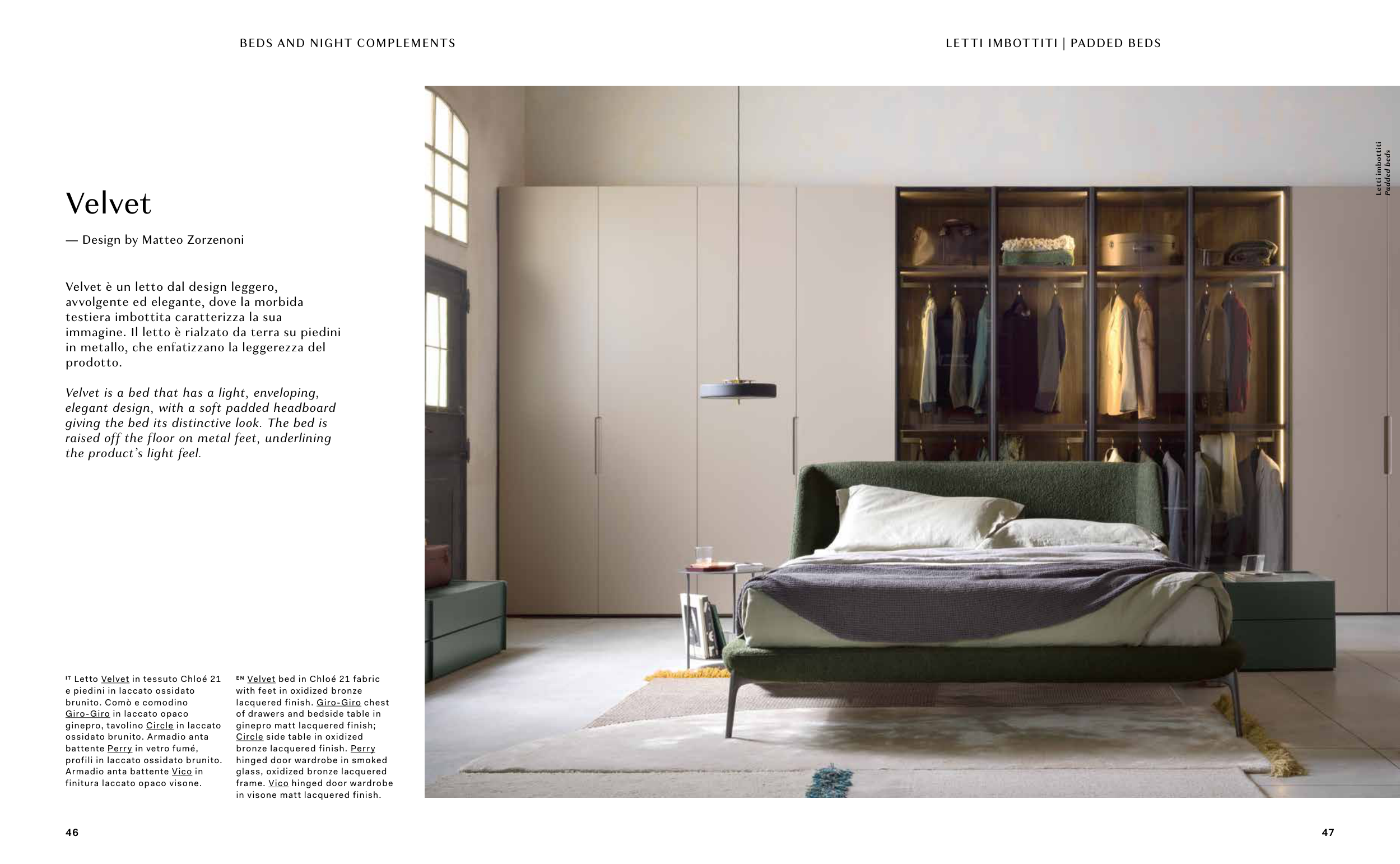 Velvet è un letto dal design leggero,