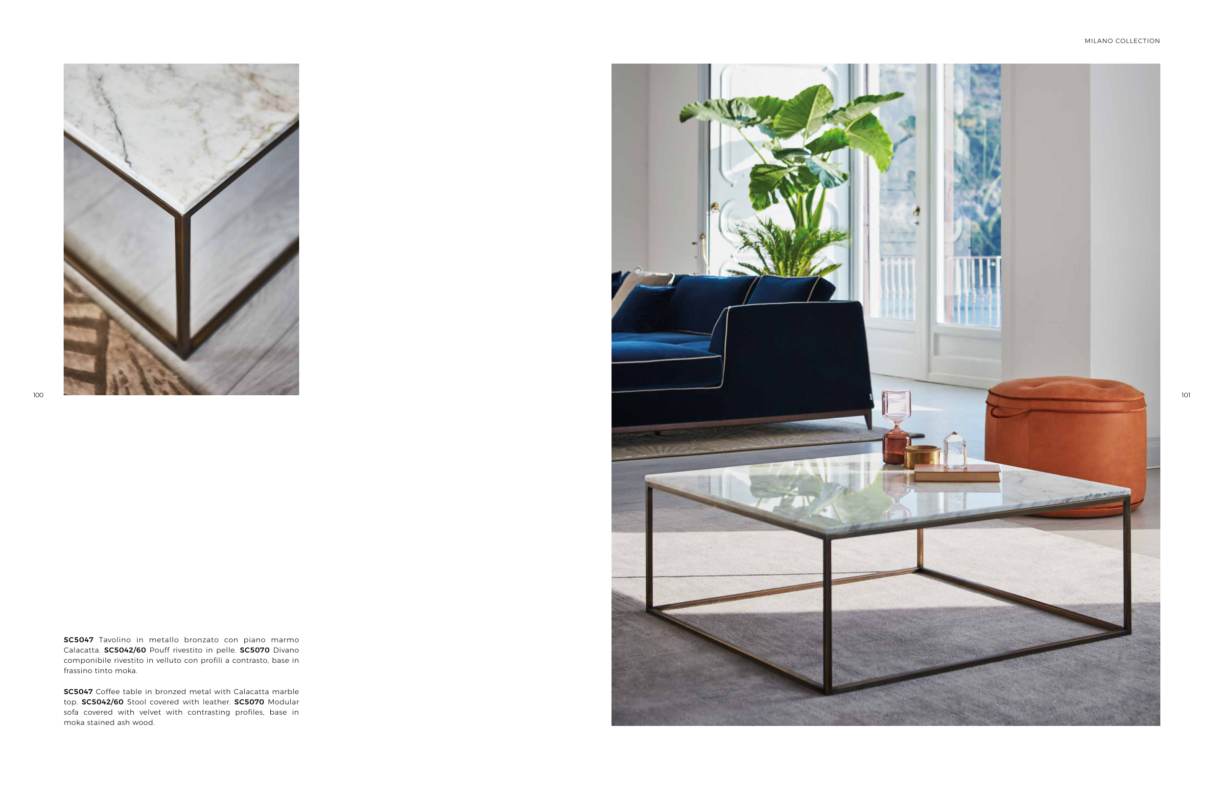 Calacatta. SC5042/60 Pouff rivestito in pelle. SC5070 Divano