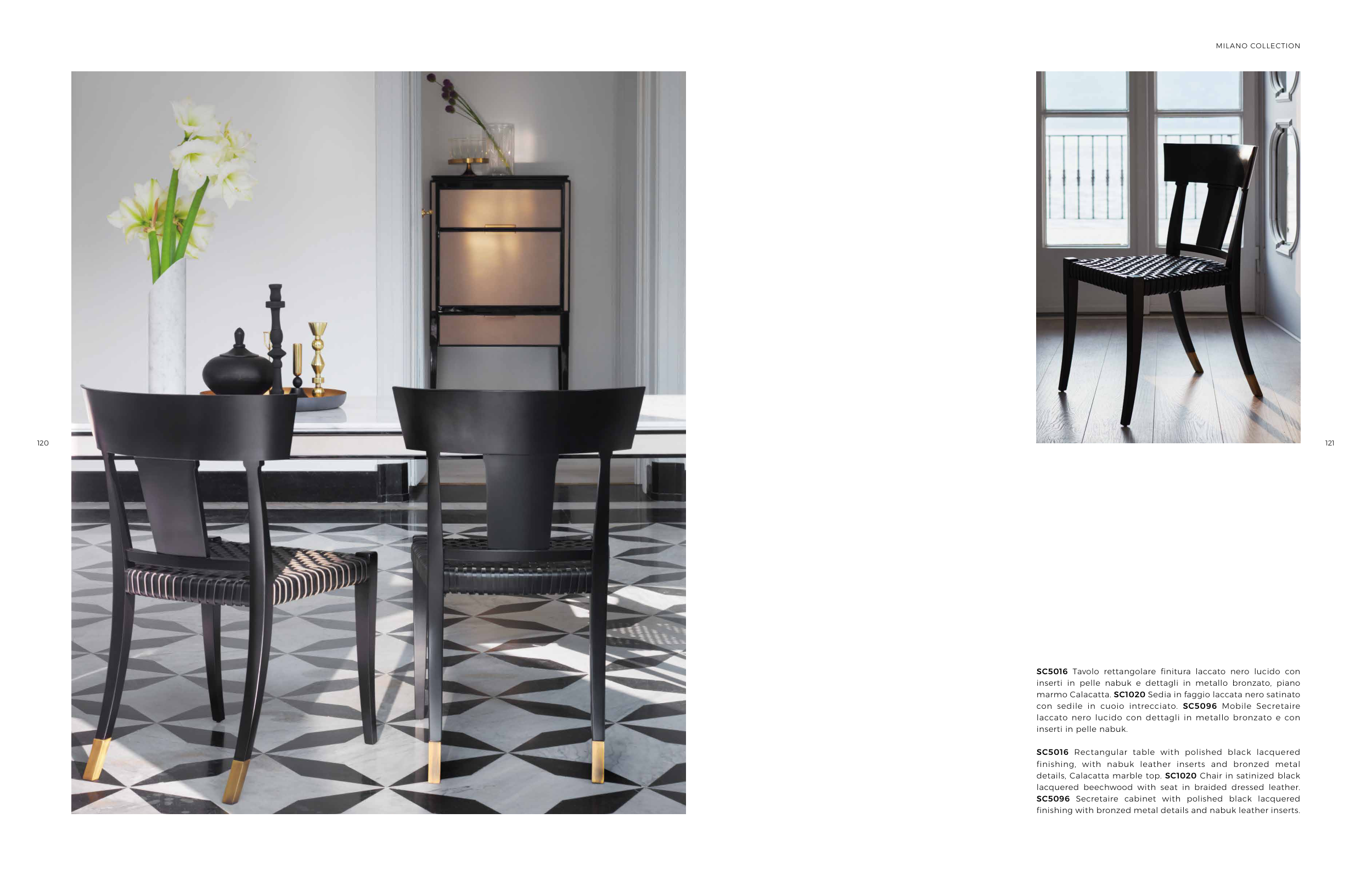 details, Calacatta marble top. SC1020 Chair in satinized black