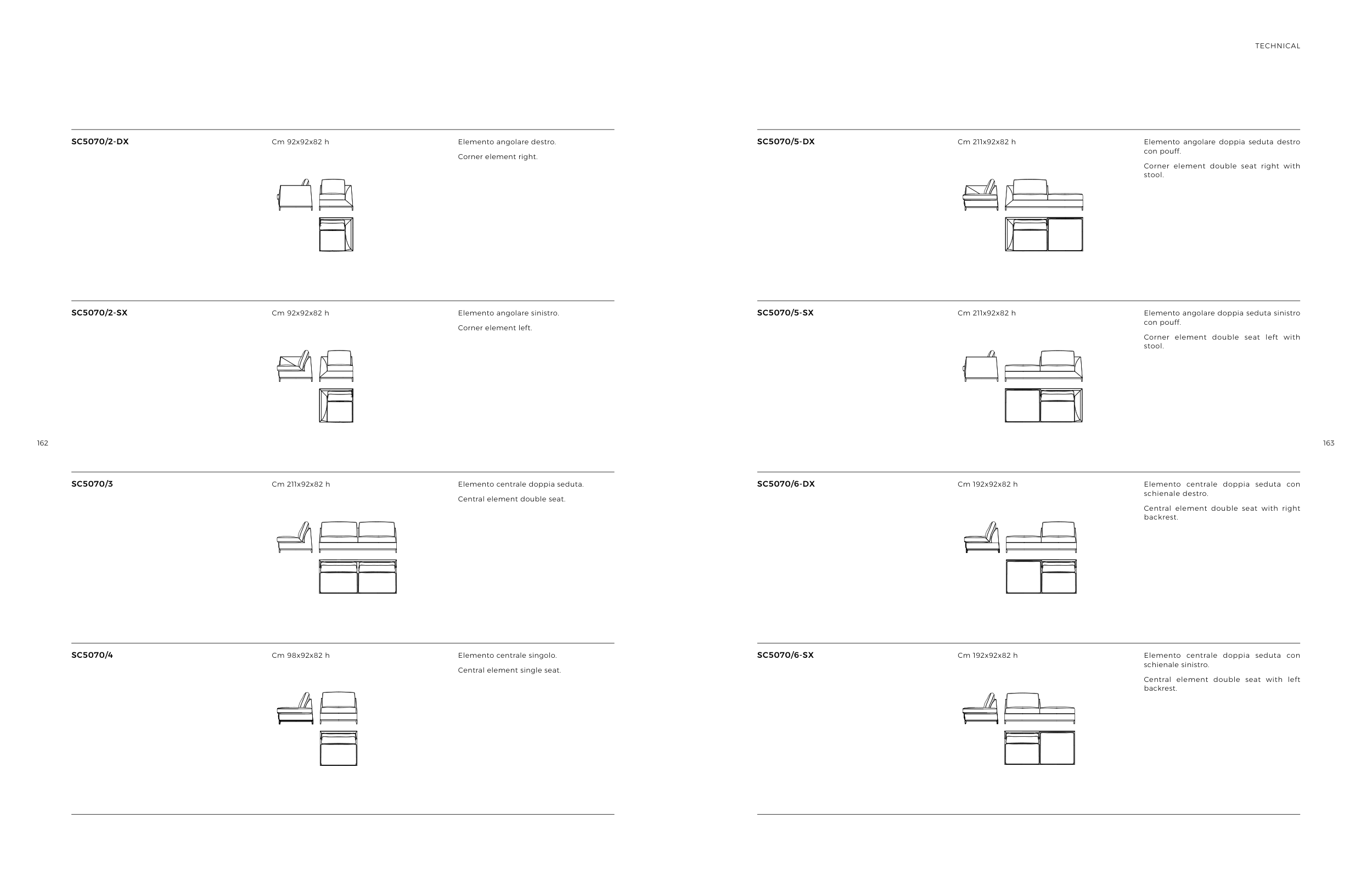 Elemento angolare doppia seduta sinistro
