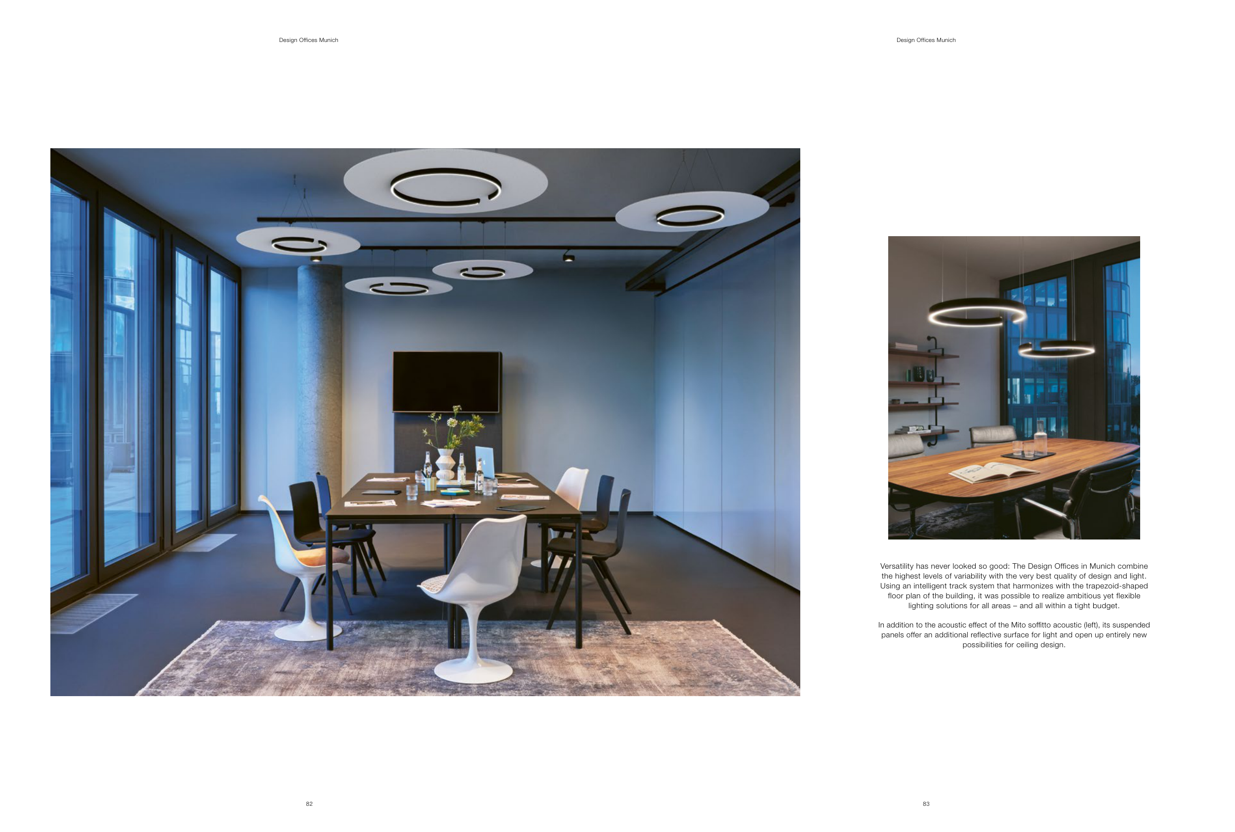 In addition to the acoustic effect of the Mito soffitto acoustic (left), its suspended