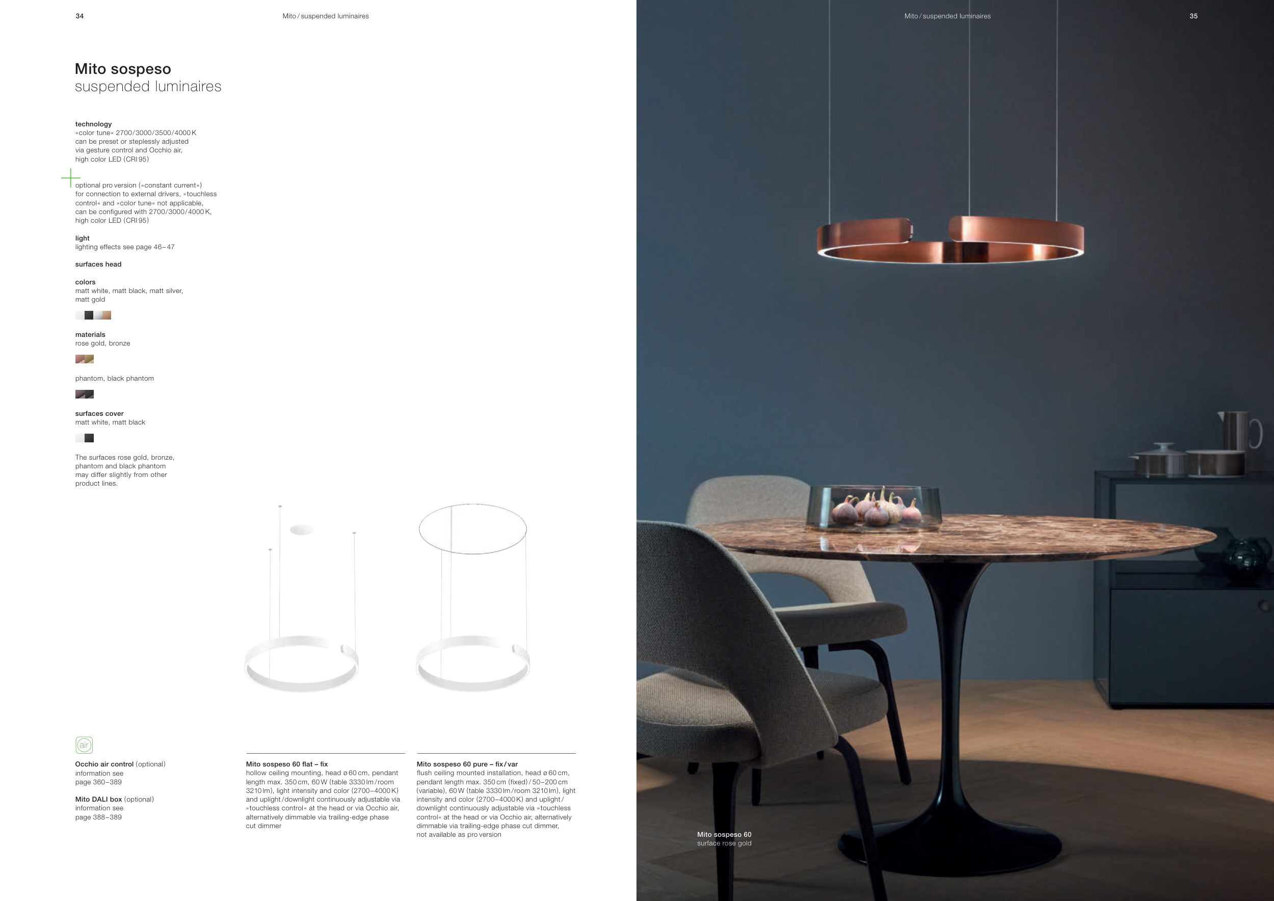 control « at the head or via Occhio air, alternatively