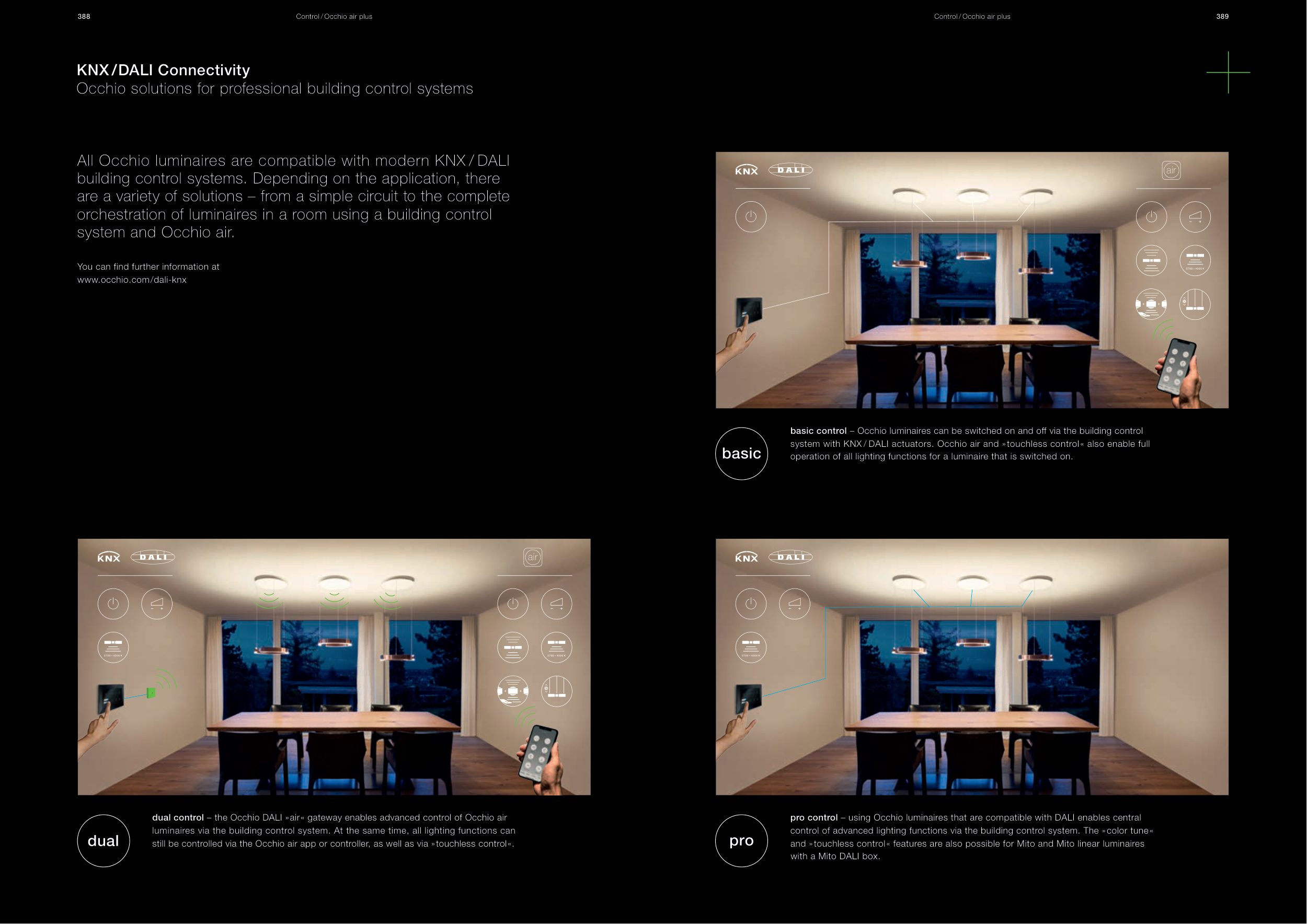 system with KNX / DALI actuators. Occhio air and » touchless control « also enable full