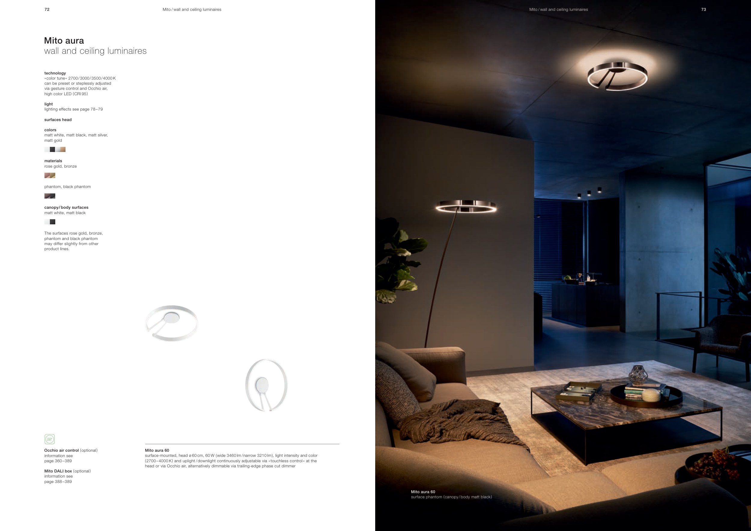head or via Occhio air, alternatively dimmable via trailing-edge phase cut dimmer