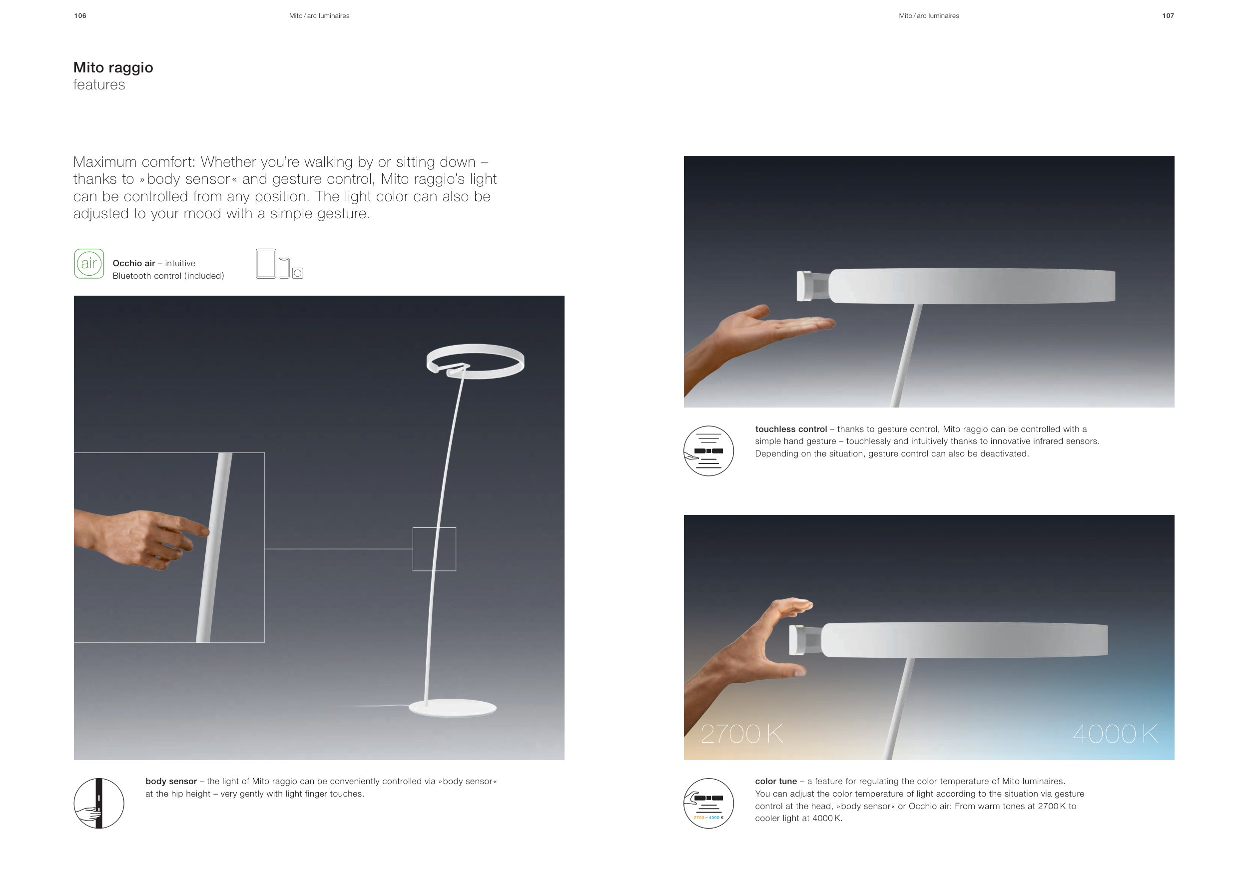 control at the head, » body sensor « or Occhio air: From warm tones at 2700 K to