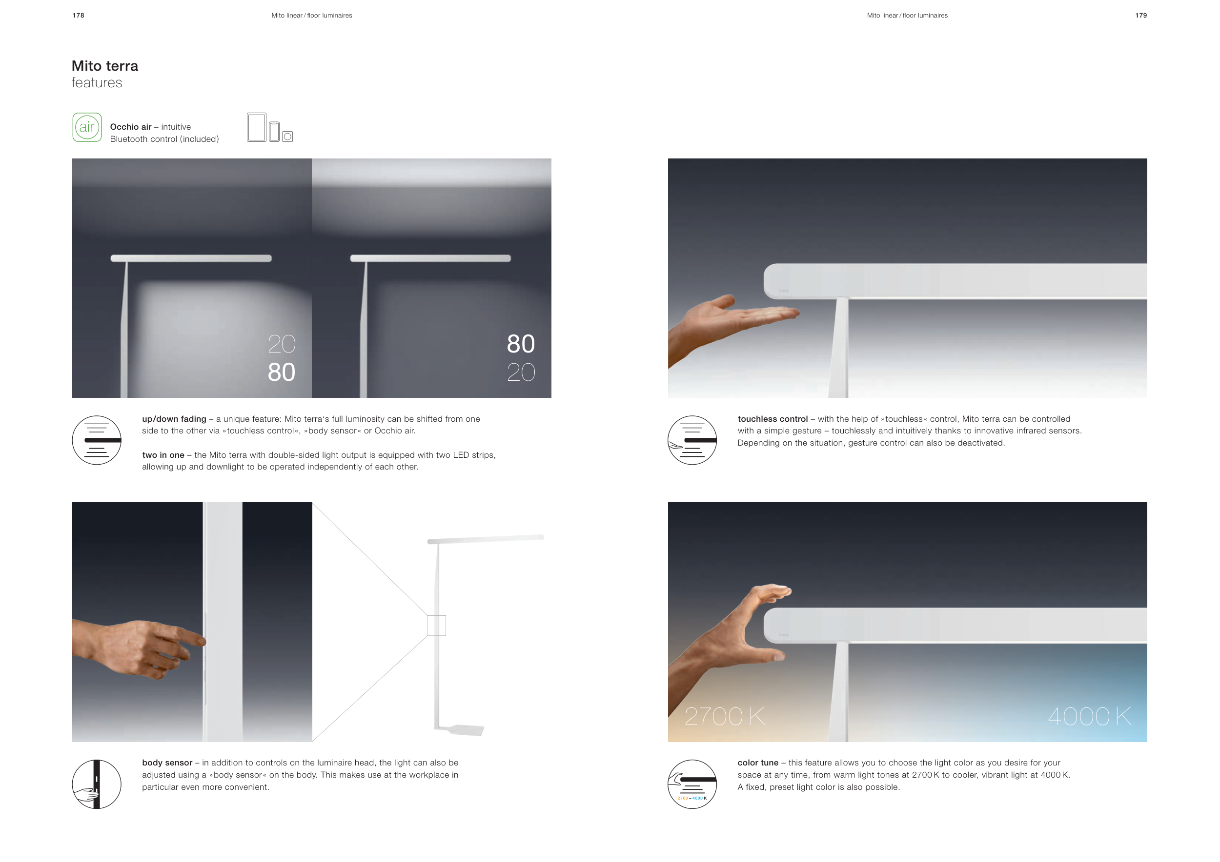 side to the other via » touchless control «, » body sensor « or Occhio air.