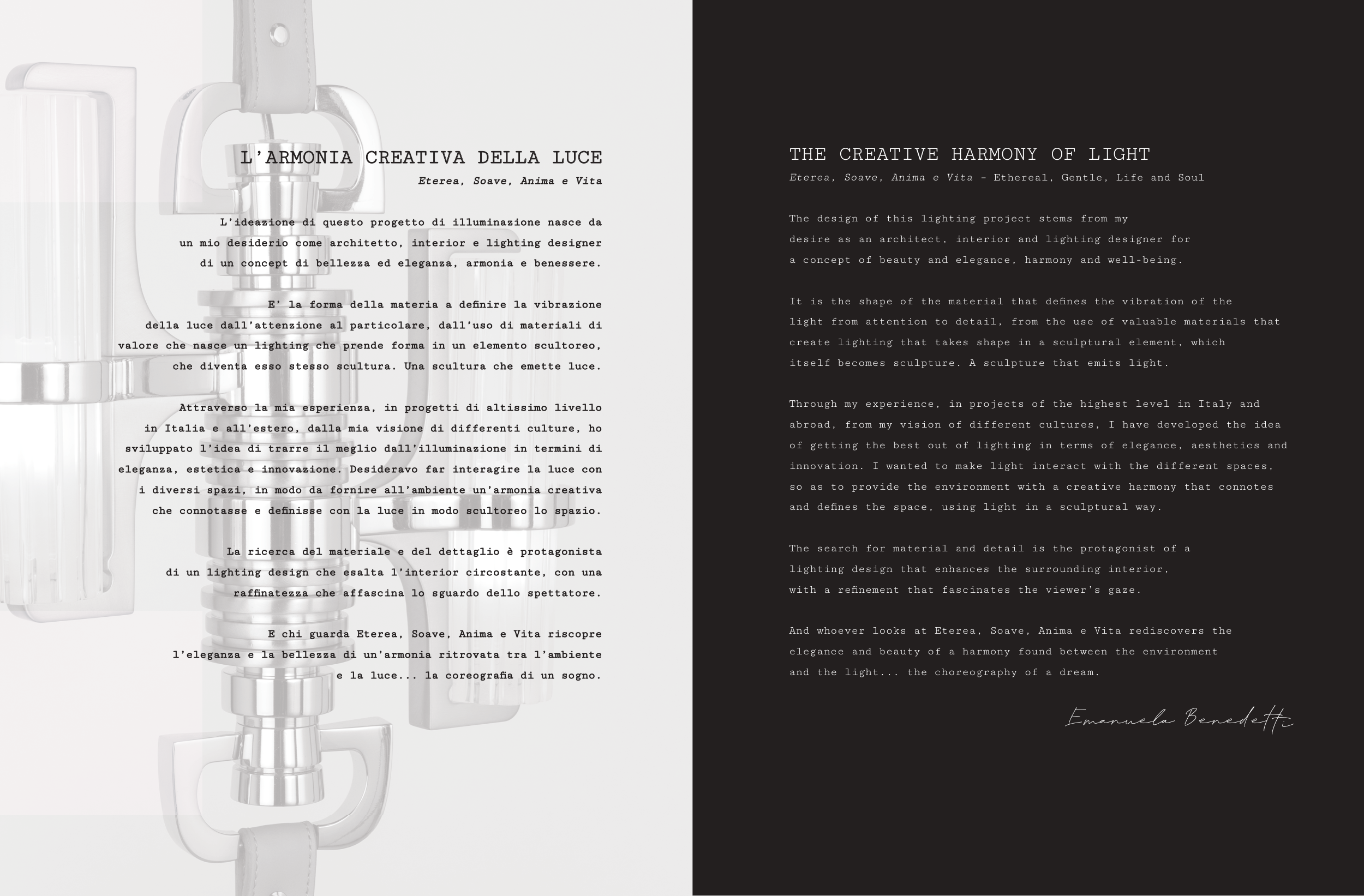 eleganza, estetica e innovazione. Desideravo far interagire la luce con