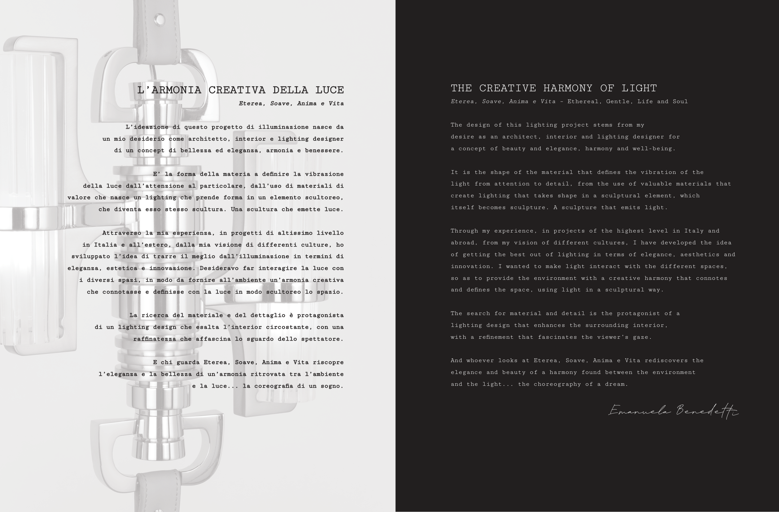 eleganza, estetica e innovazione. Desideravo far interagire la luce con
