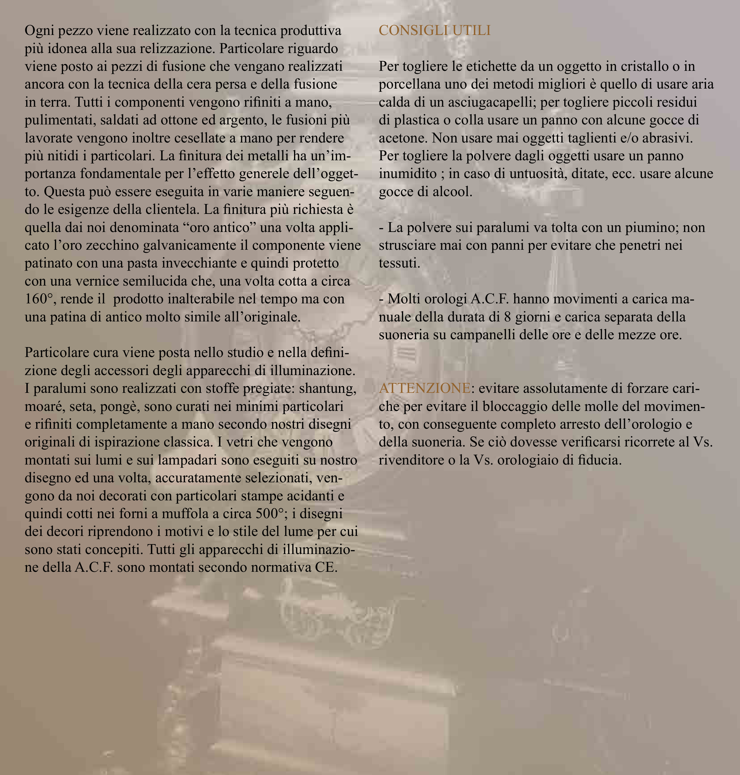 - Molti orologi A.C.F. hanno movimenti a carica ma-