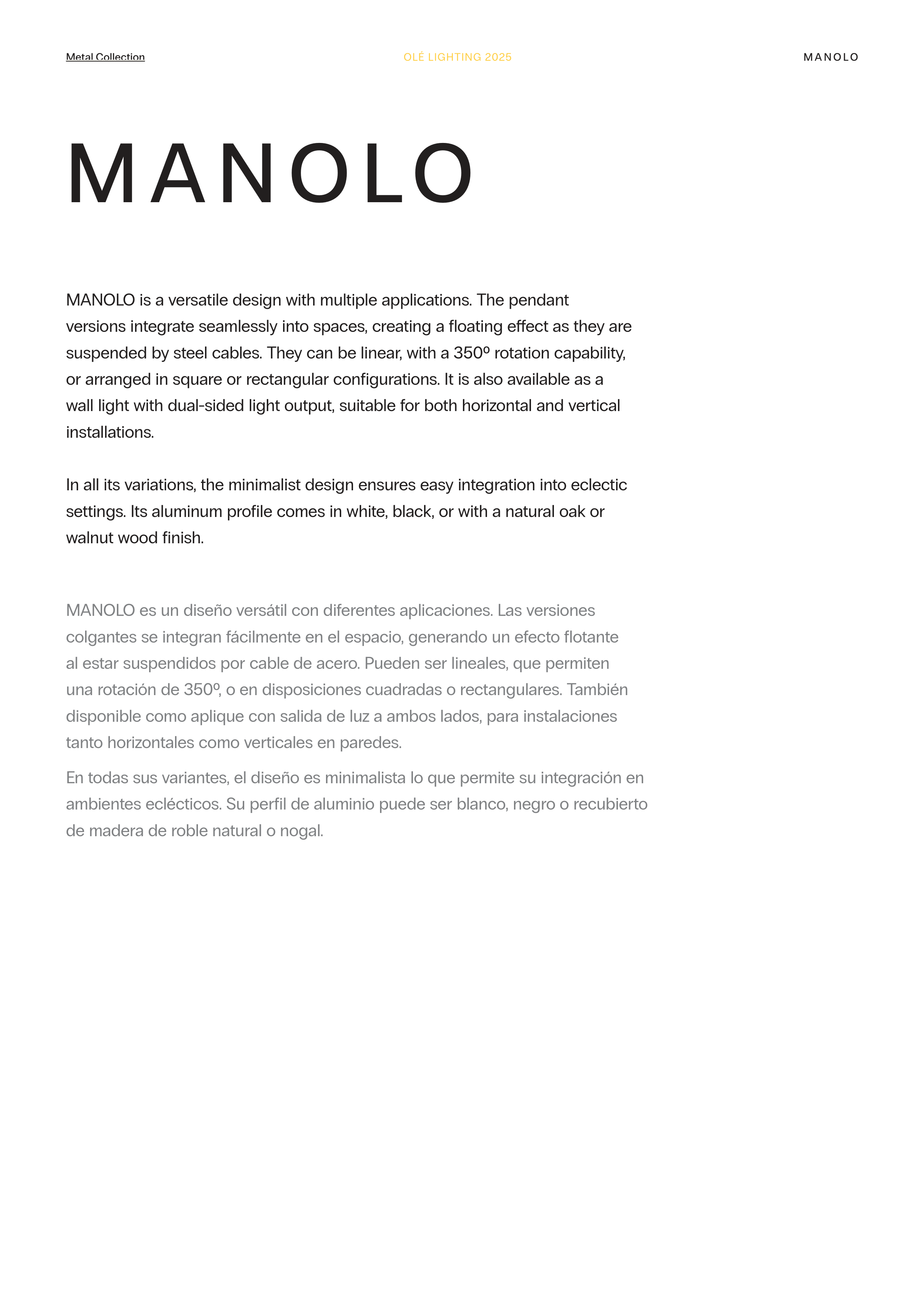 MANOLO is a versatile design with multiple applications. The pendant