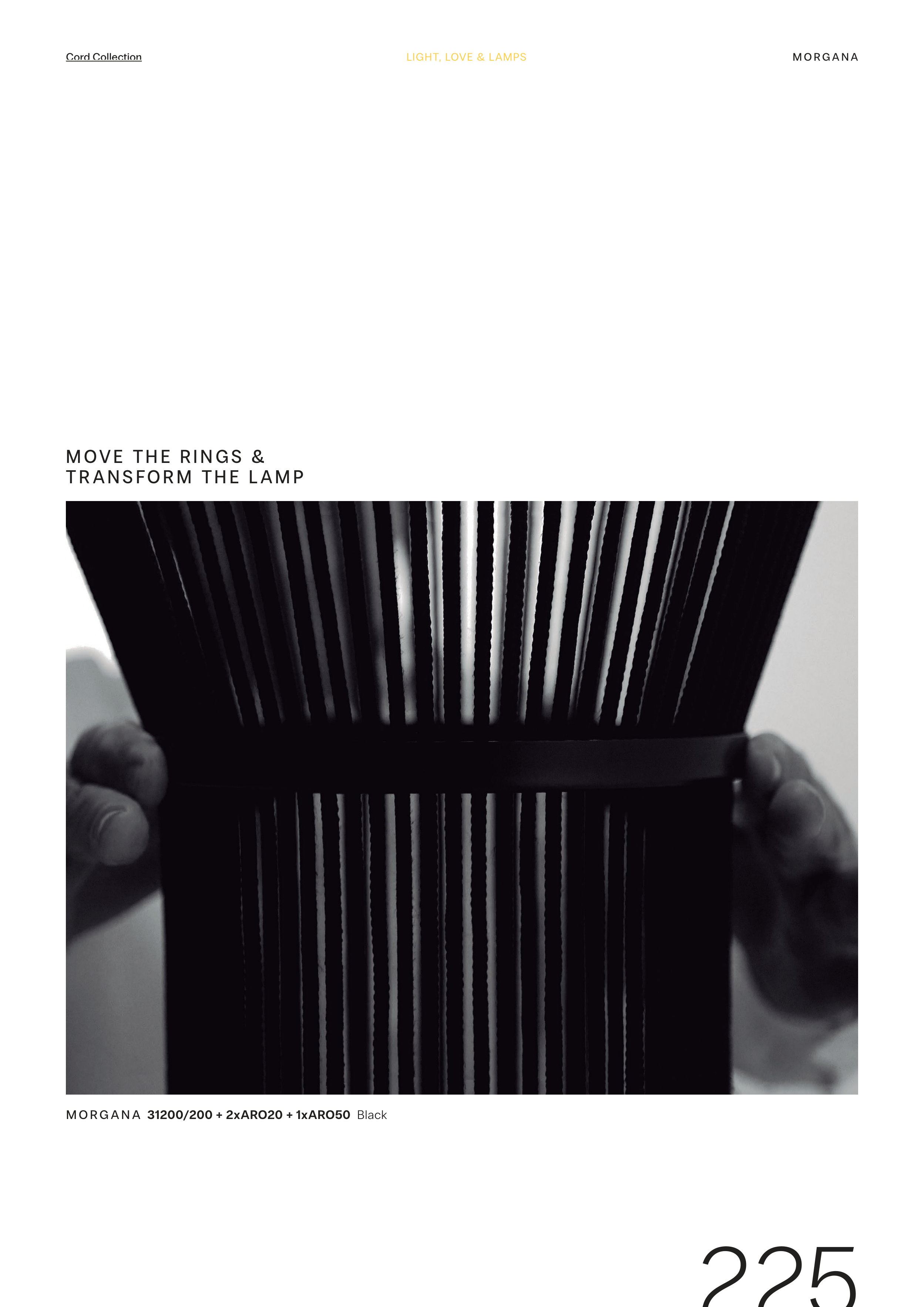 M OV E TH E R I N G S & TR A N S FO R M TH E L A M P M O R G A N A 31200/200 + 2xARO20 + 1xARO50 Black 225 LIGHT, LOVE & LAMPS M O R G A N A Cord Collection