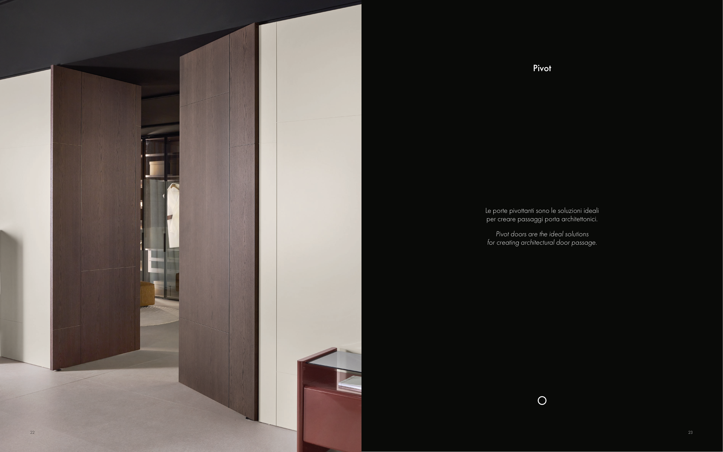 Pivot Le porte pivottanti sono le soluzioni ideali per creare passaggi porta architettonici. Pivot doors are the ideal solutions for creating architectural door passage. 22 23