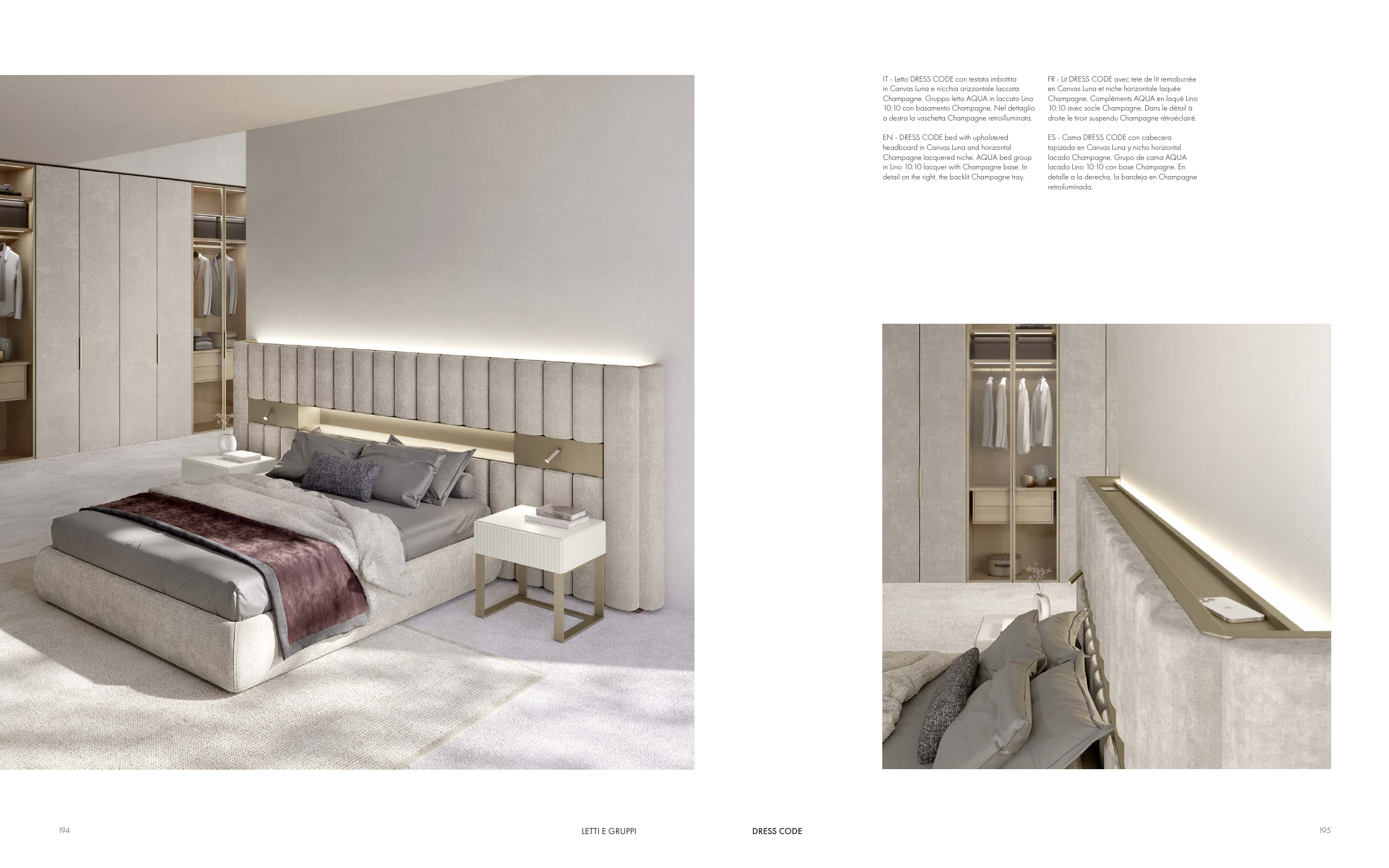 Champagne. Gruppo letto AQUA in laccato Lino