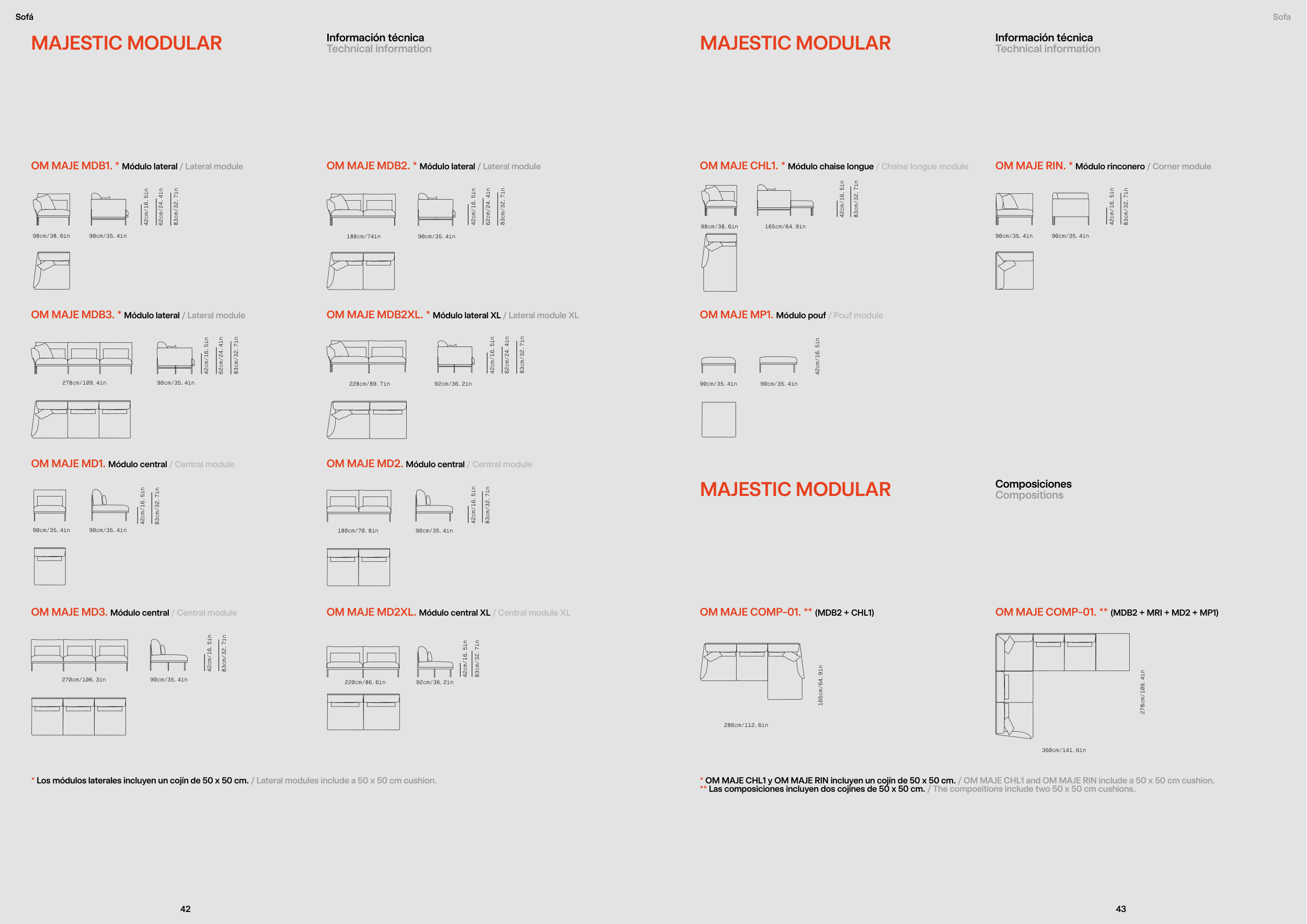 * OM MAJE CHL1 y OM MAJE RIN incluyen un cojín de 50 x 50 cm. / OM MAJE CHL1 and OM MAJE RIN include a 50 x 50 cm cushion.