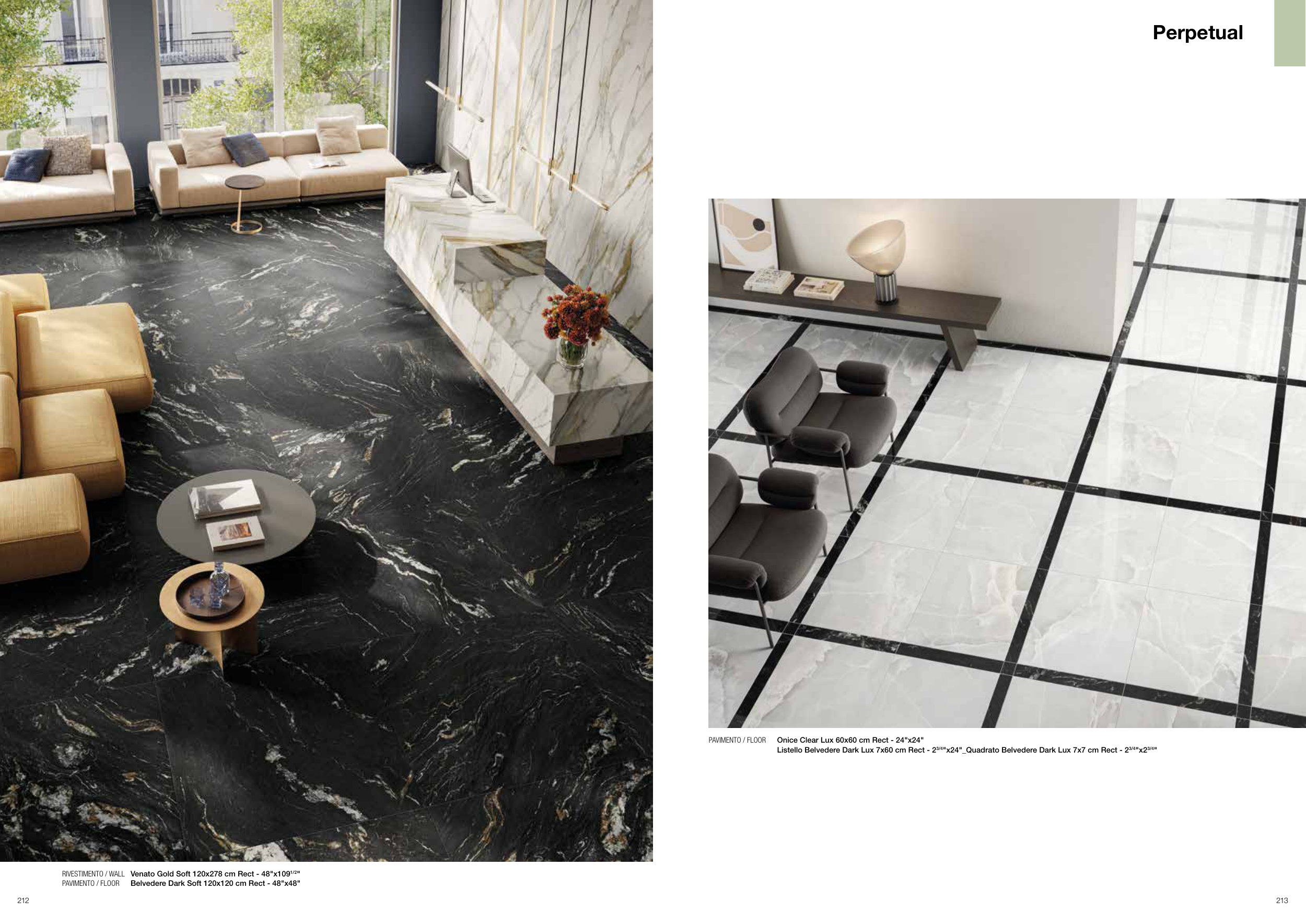 Listello Belvedere Dark Lux 7x60 cm Rect - 23/4"x24"_Quadrato Belvedere Dark Lux 7x7 cm Rect - 23/4"x23/4"