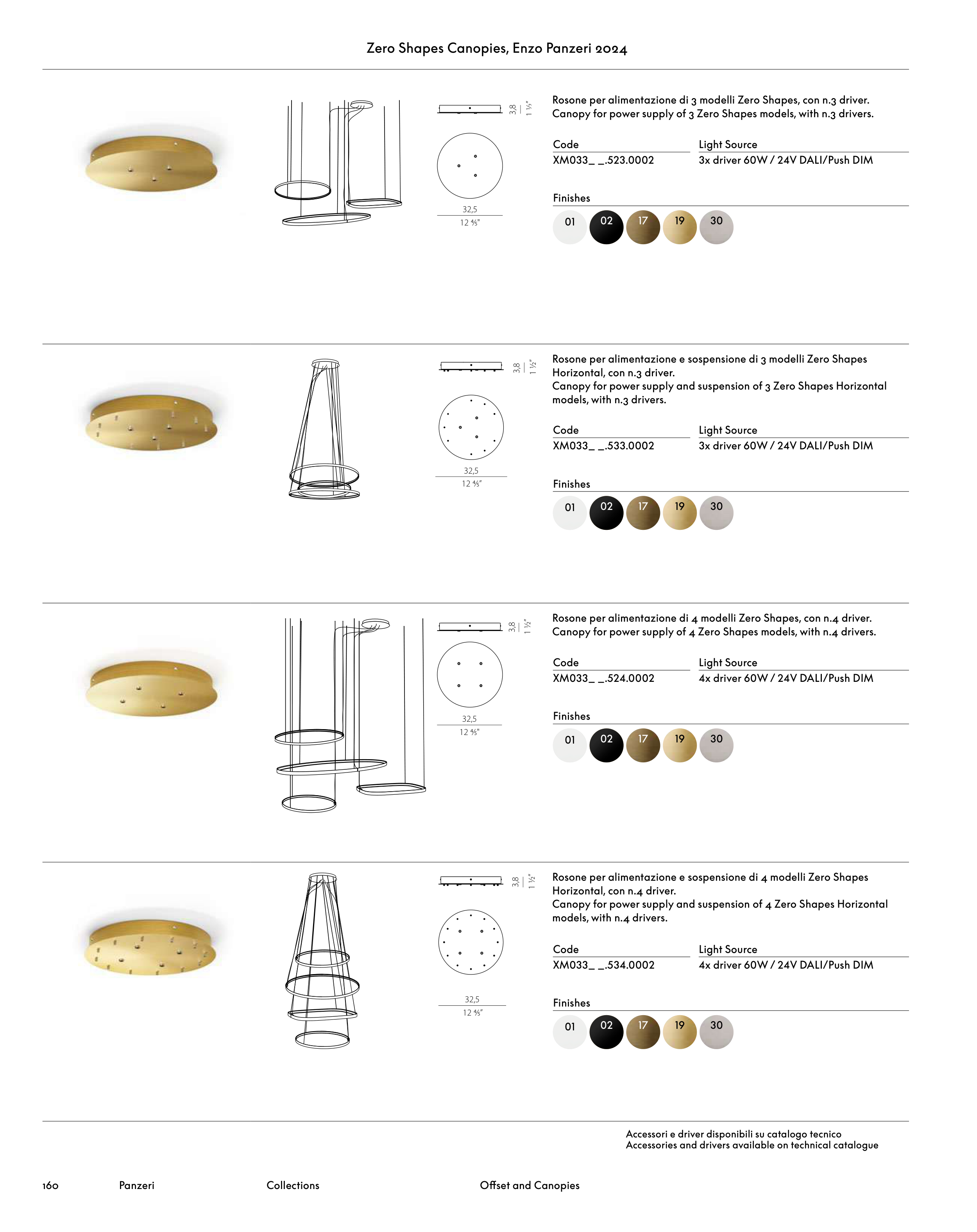 Rosone per alimentazione e sospensione di 4 modelli Zero Shapes