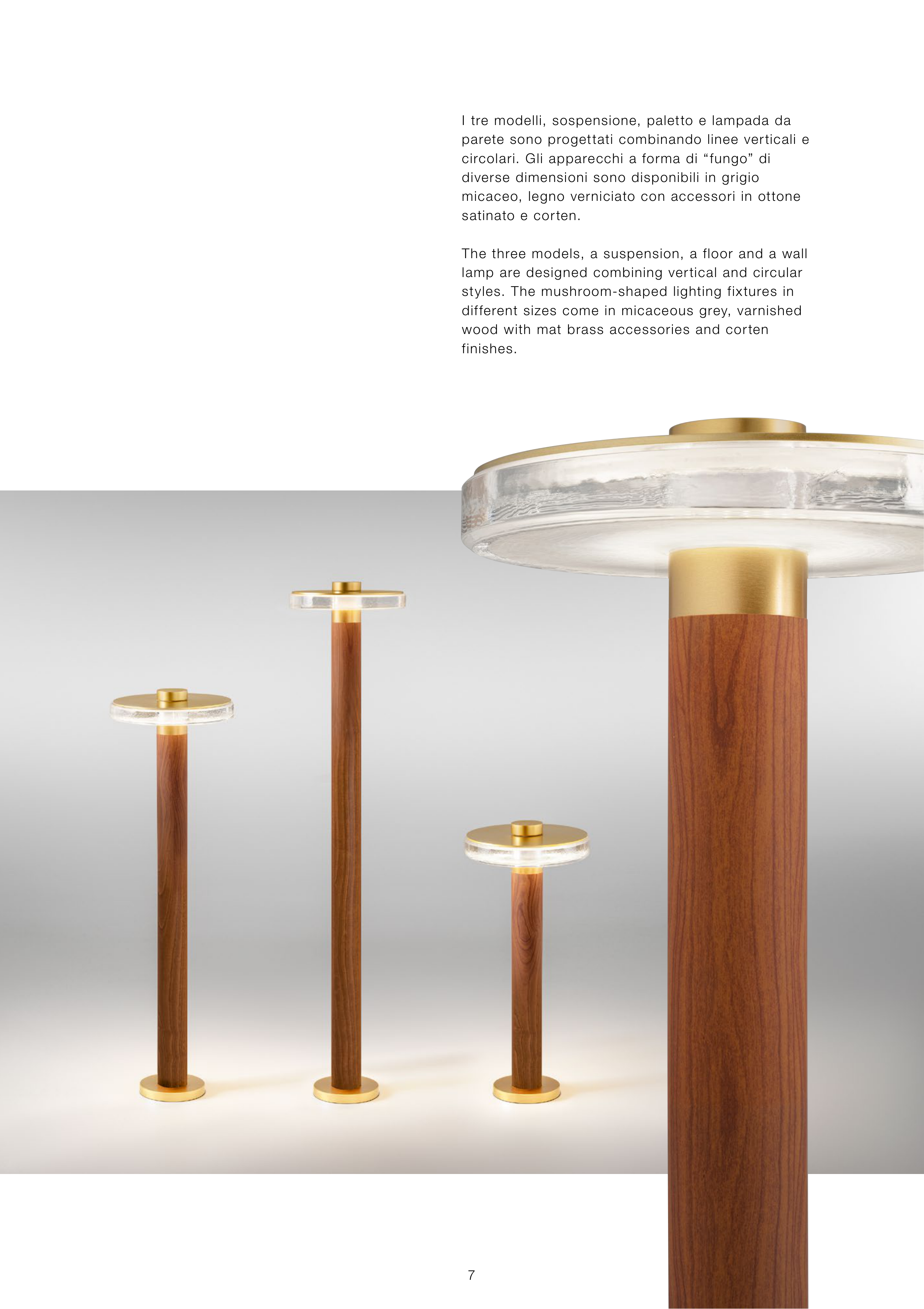 I tre modelli, sospensione, paletto e lampada da
