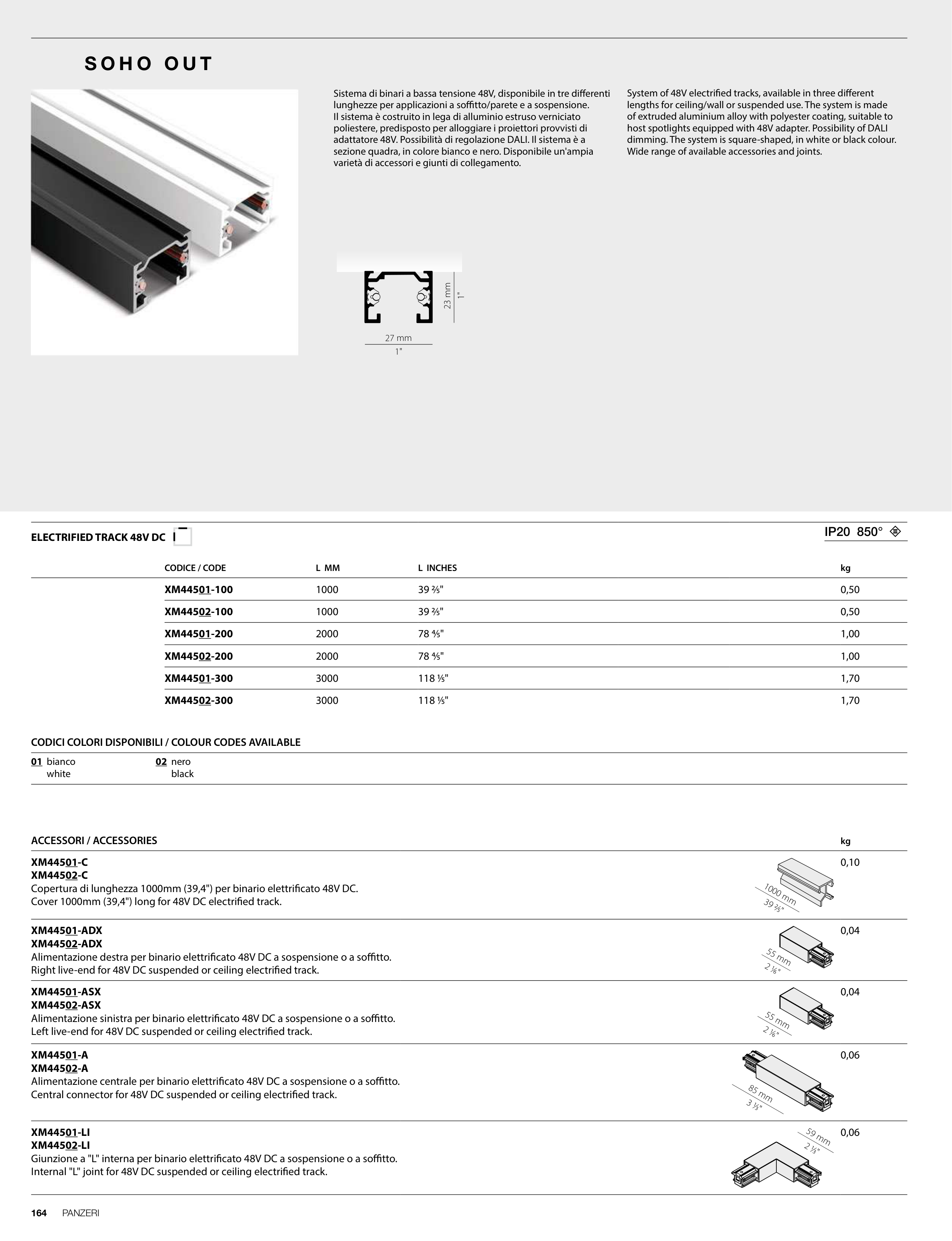 Sistema di binari a bassa tensione 48V, disponibile in tre differenti
