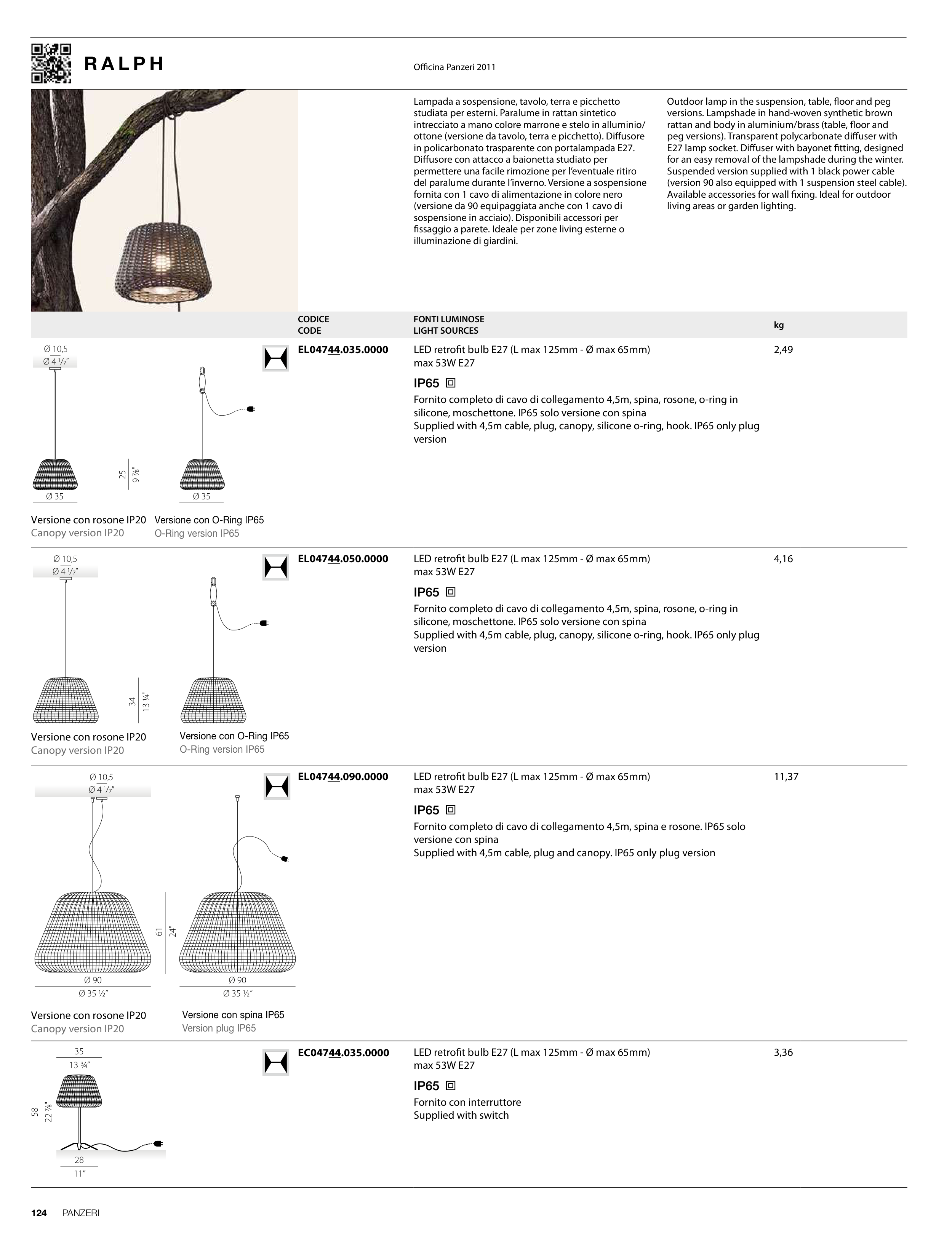 Supplied with 4,5m cable, plug, canopy, silicone o-ring, hook. IP65 only plug