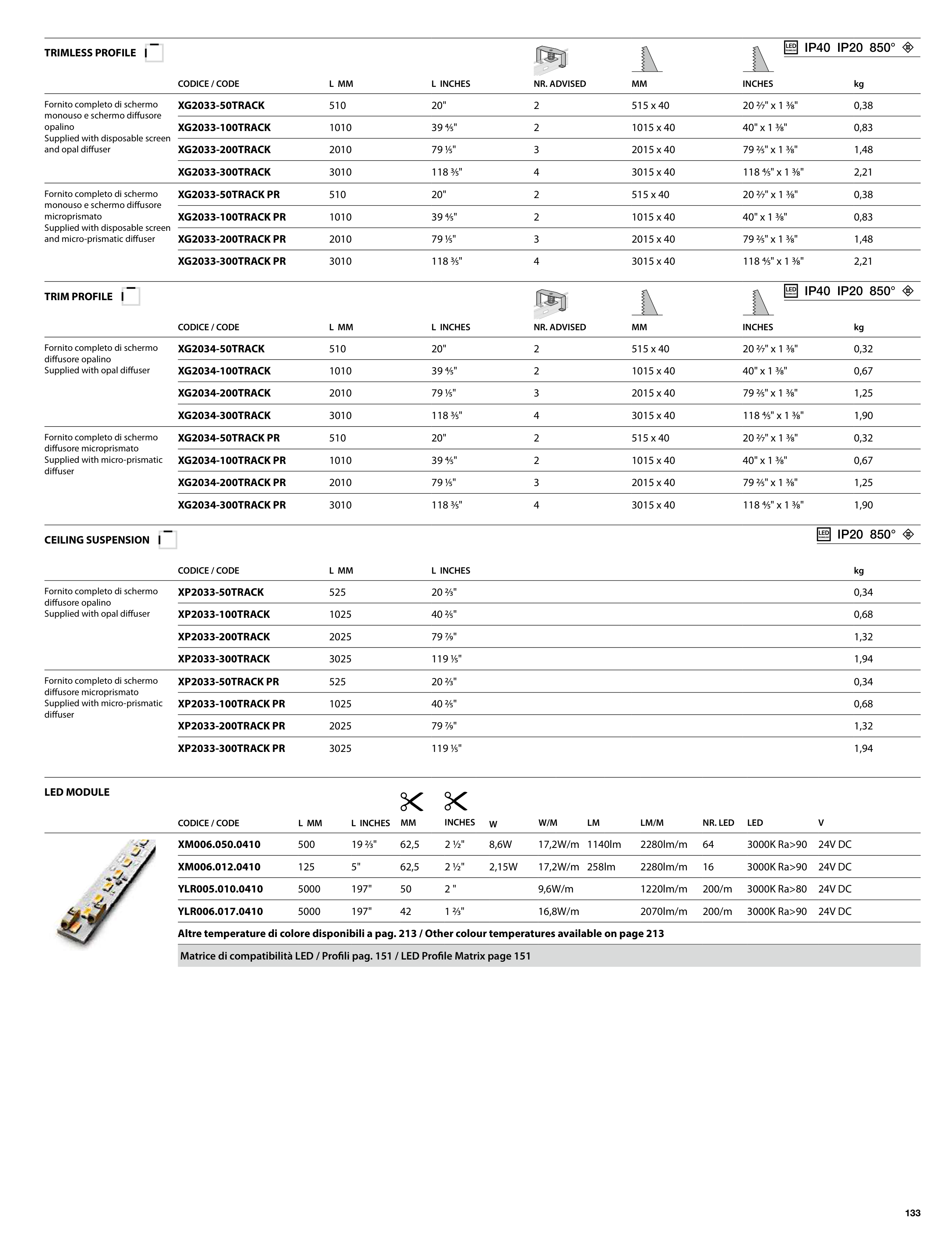 Matrice di compatibilità LED / Profili pag. 151 / LED Profile Matrix page 151