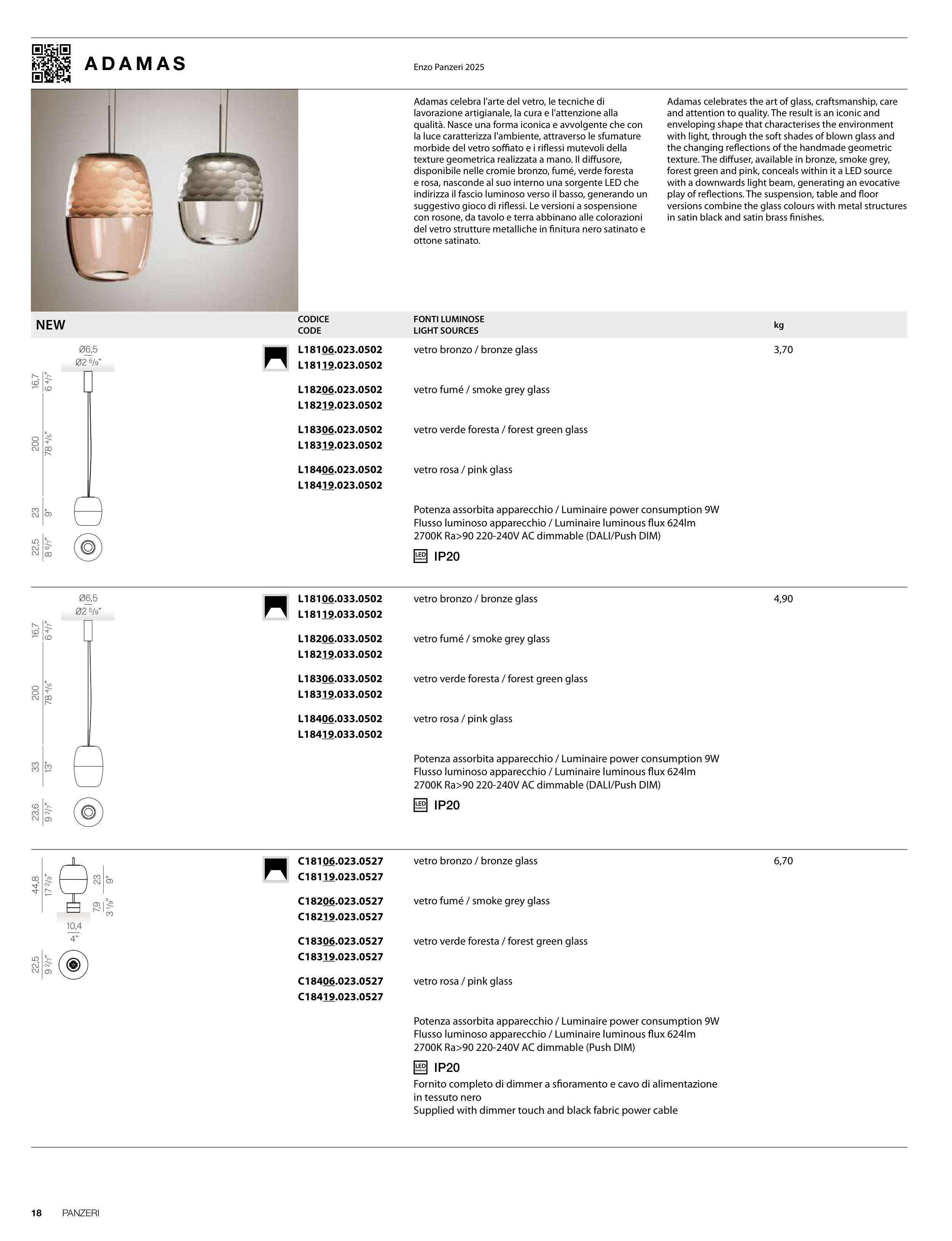 Fornito completo di dimmer a sfioramento e cavo di alimentazione