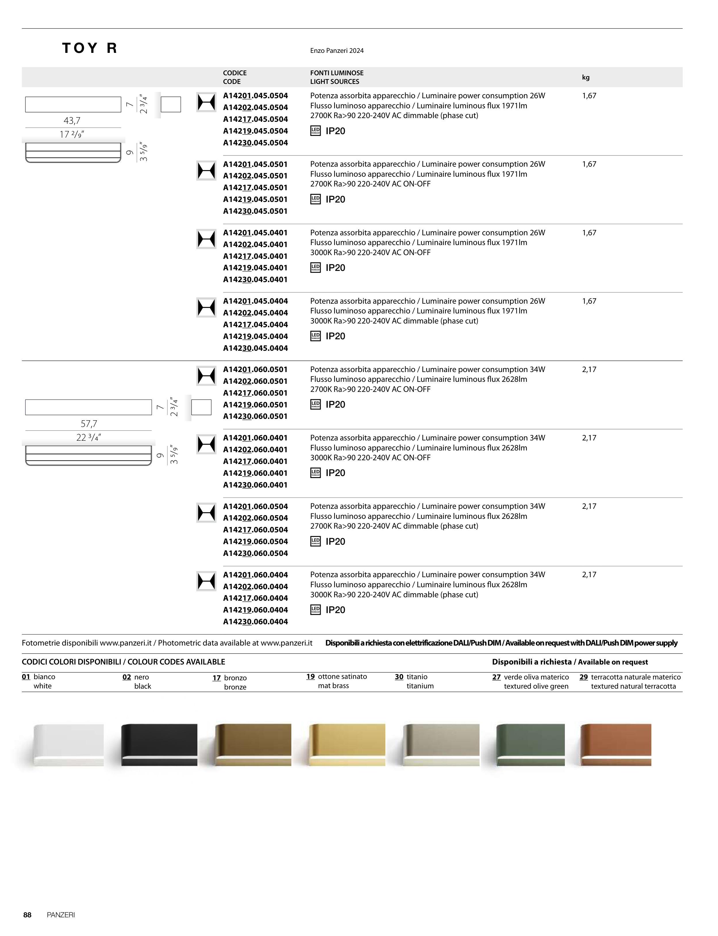 Fotometrie disponibili www.panzeri.it / Photometric data available at www.panzeri.it Disponibili a richiesta con elettrificazione DALI/Push DIM / Available on request with DALI/Push DIM power supply