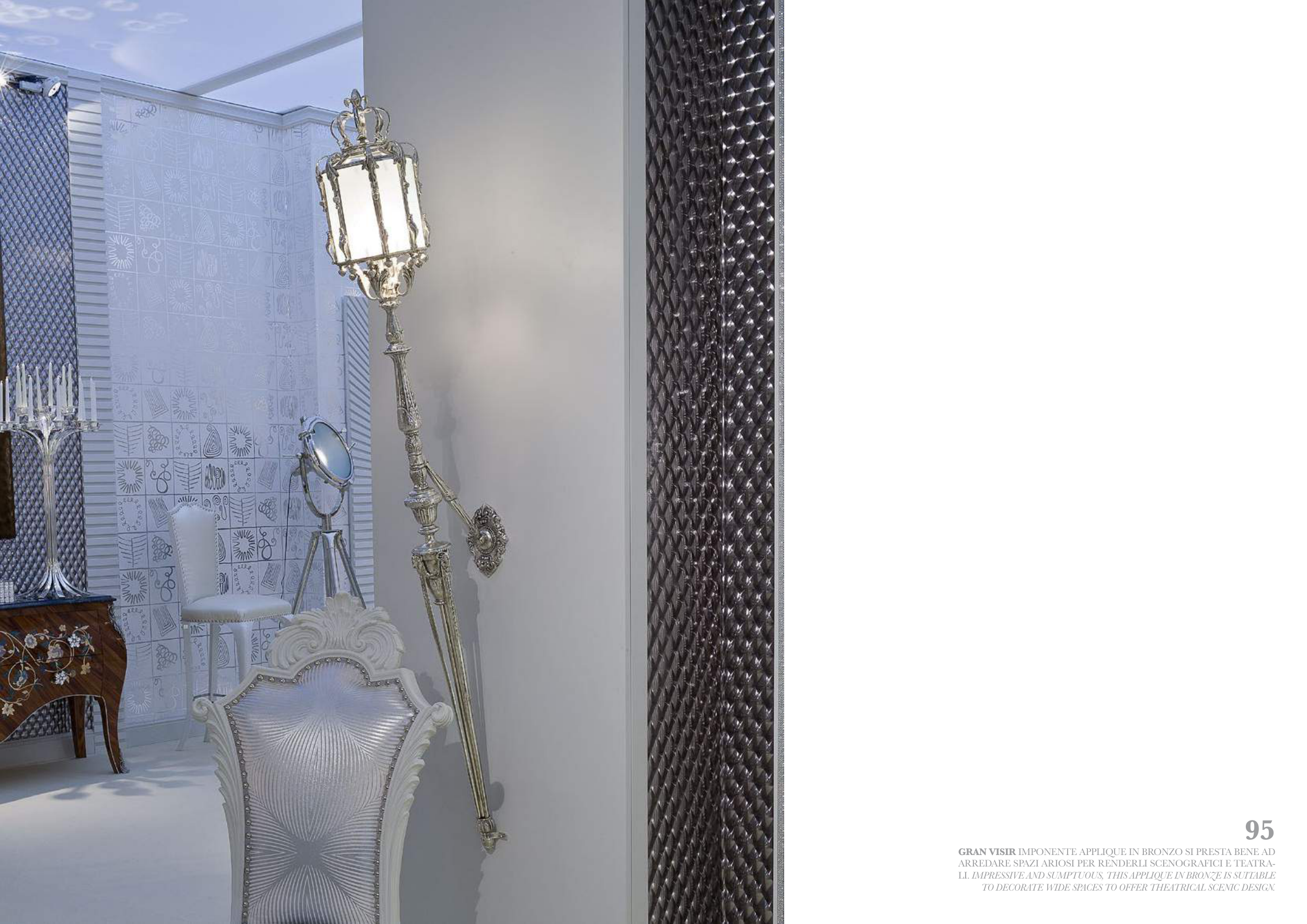 GRAN VISIR IMPONENTE APPLIQUE IN BRONZO SI PRESTA BENE AD ARREDARE SPAZI ARIOSI PER RENDERLI SCENOGRAFICI E TEATRA- LI. IMPRESSIVE AND SUMPTUOUS, THIS APPLIQUE IN BRONZE IS SUITABLE TO DECORATE WIDE SPACES TO OFFER THEATRICAL SCENIC DESIGN. 95