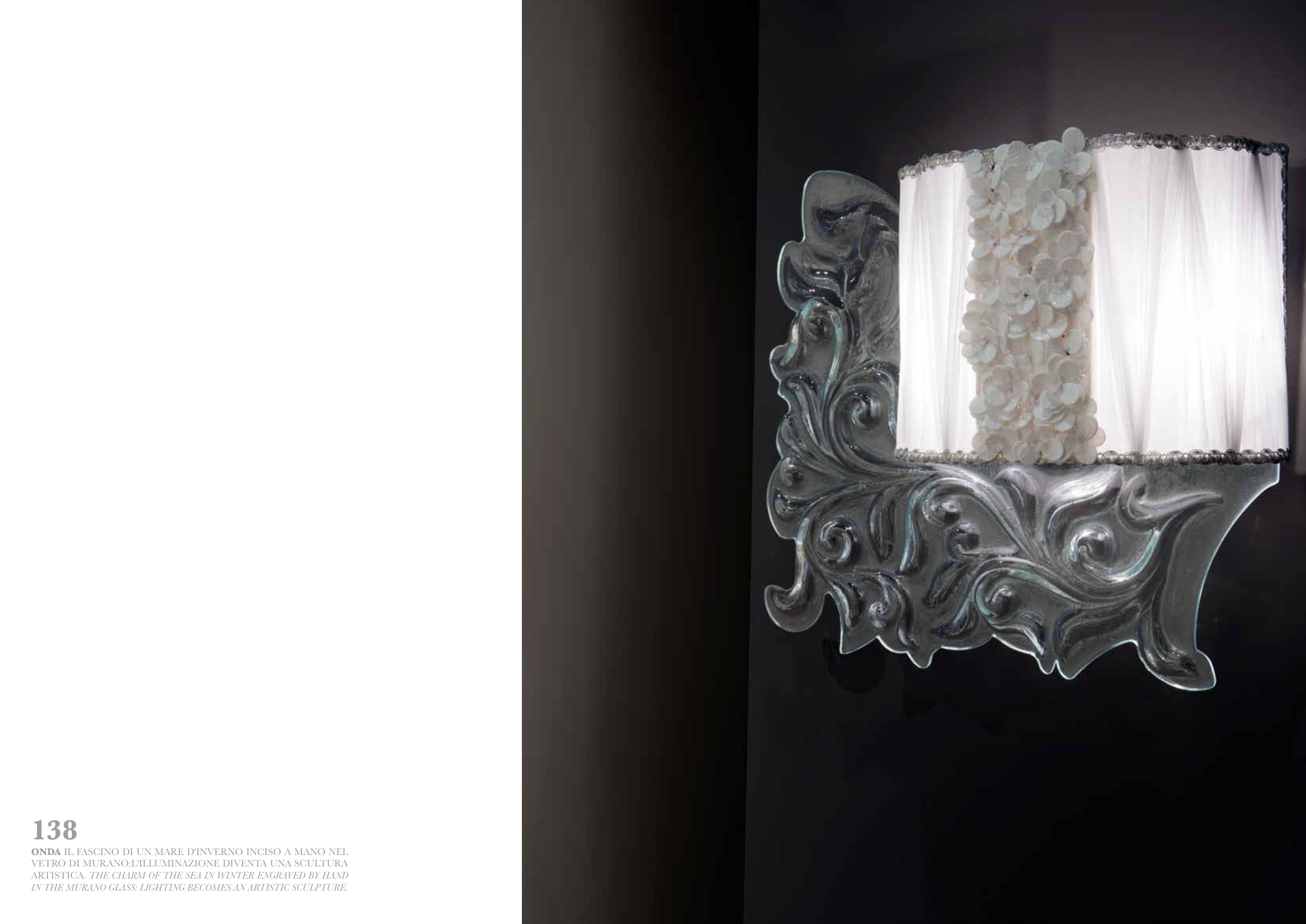 138 ONDA IL FASCINO DI UN MARE D'INVERNO INCISO A MANO NEL VETRO DI MURANO:L'ILLUMINAZIONE DIVENTA UNA SCULTURA ARTISTICA. THE CHARM OF THE SEA IN WINTER ENGRAVED BY HAND IN THE MURANO GLASS: LIGHTING BECOMES AN ARTISTIC SCULPTURE.
