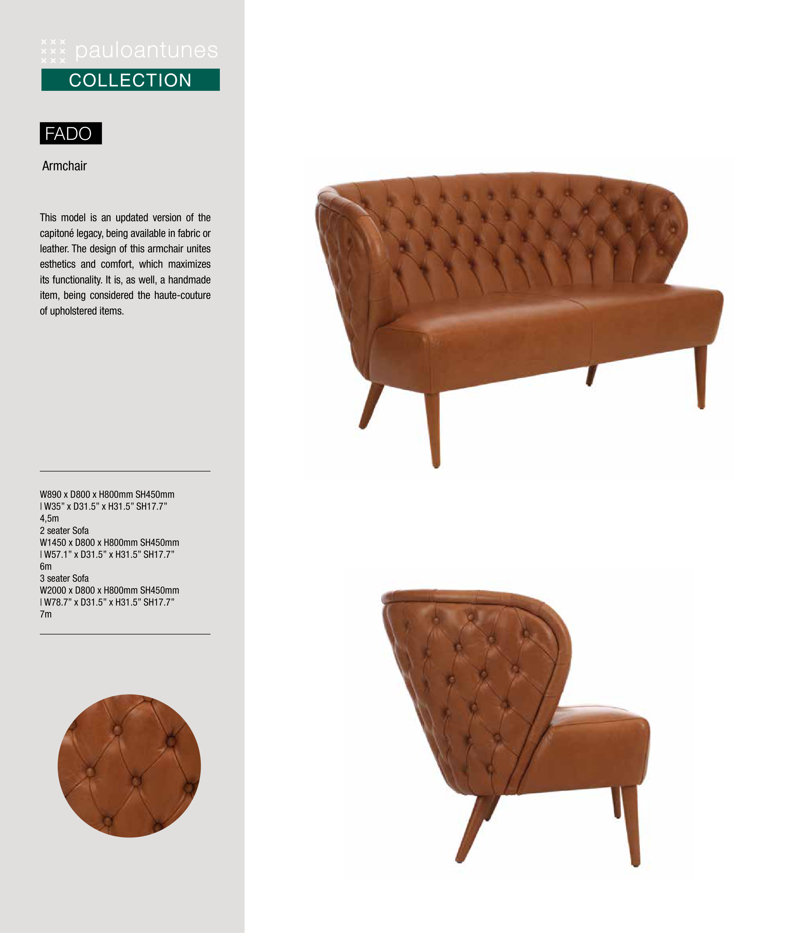 capitoné legacy, being available in fabric or