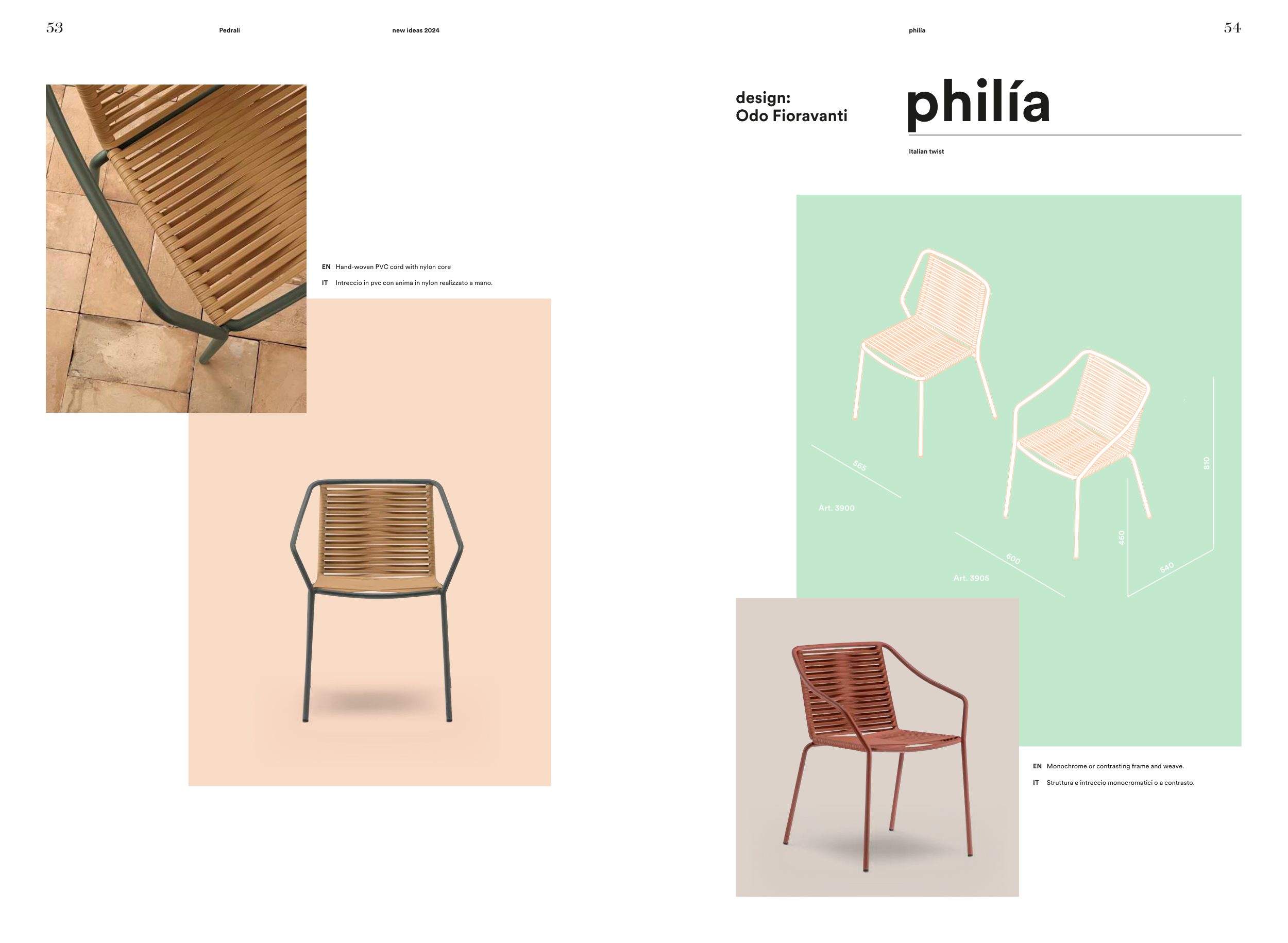 Intreccio in pvc con anima in nylon realizzato a mano.
