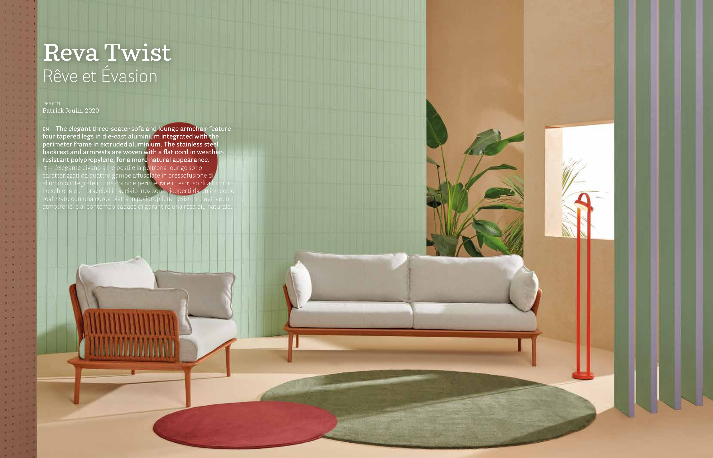 IT — L’elegante divano a tre posti e la poltrona lounge sono