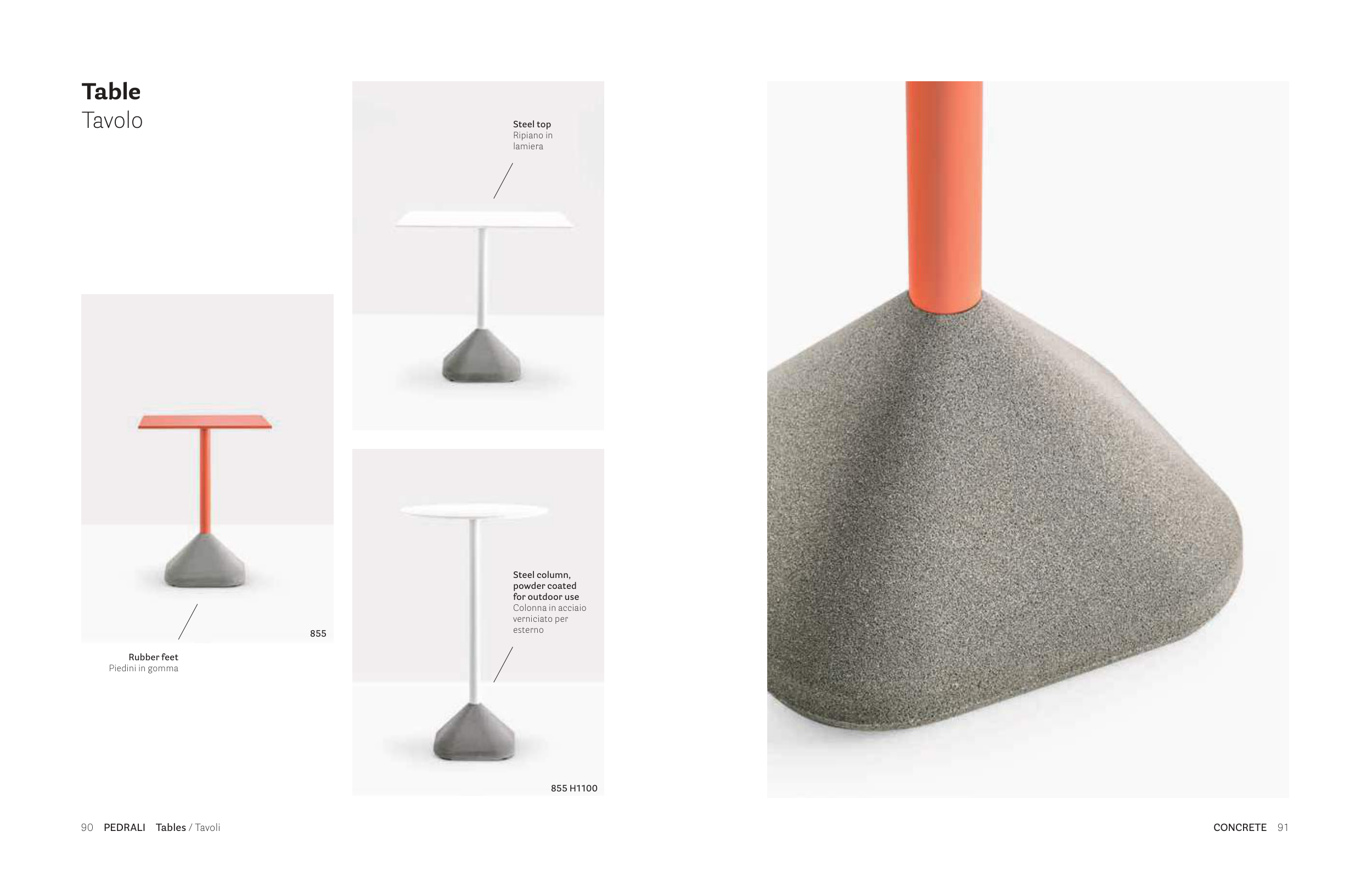 CONCRETE 91 90 PEDRALI Tables / Tavoli Table Tavolo 855 H1100 Steel column, powder coated for outdoor use Colonna in acciaio verniciato per esterno Steel top Ripiano in lamiera Rubber feet Piedini in gomma 855