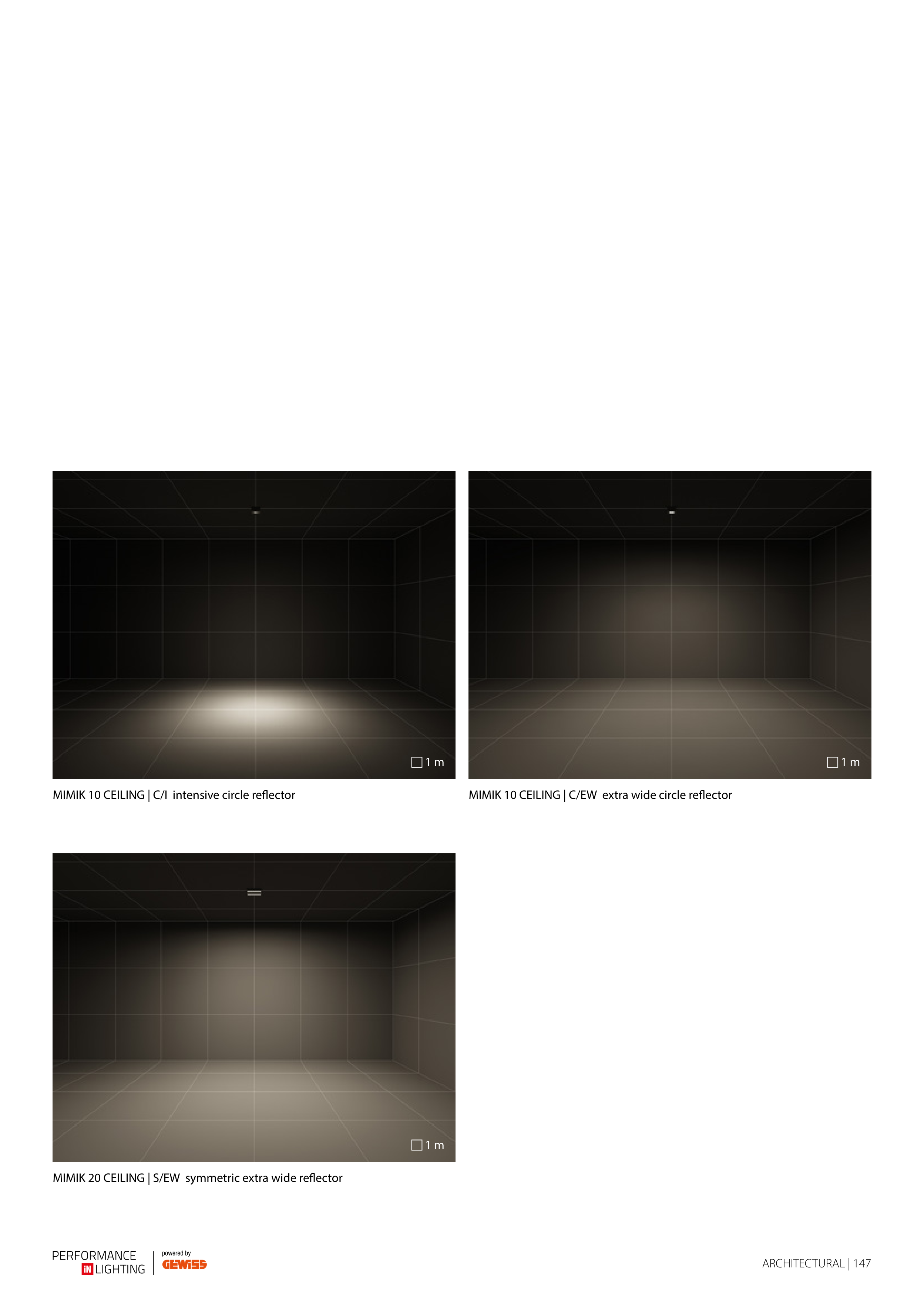 ARCHITECTURAL | 147 MIMIK 10 CEILING | C/I intensive circle reflector MIMIK 10 CEILING | C/EW extra wide circle reflector MIMIK 20 CEILING | S/EW symmetric extra wide reflector 1 m 1 m 1 m