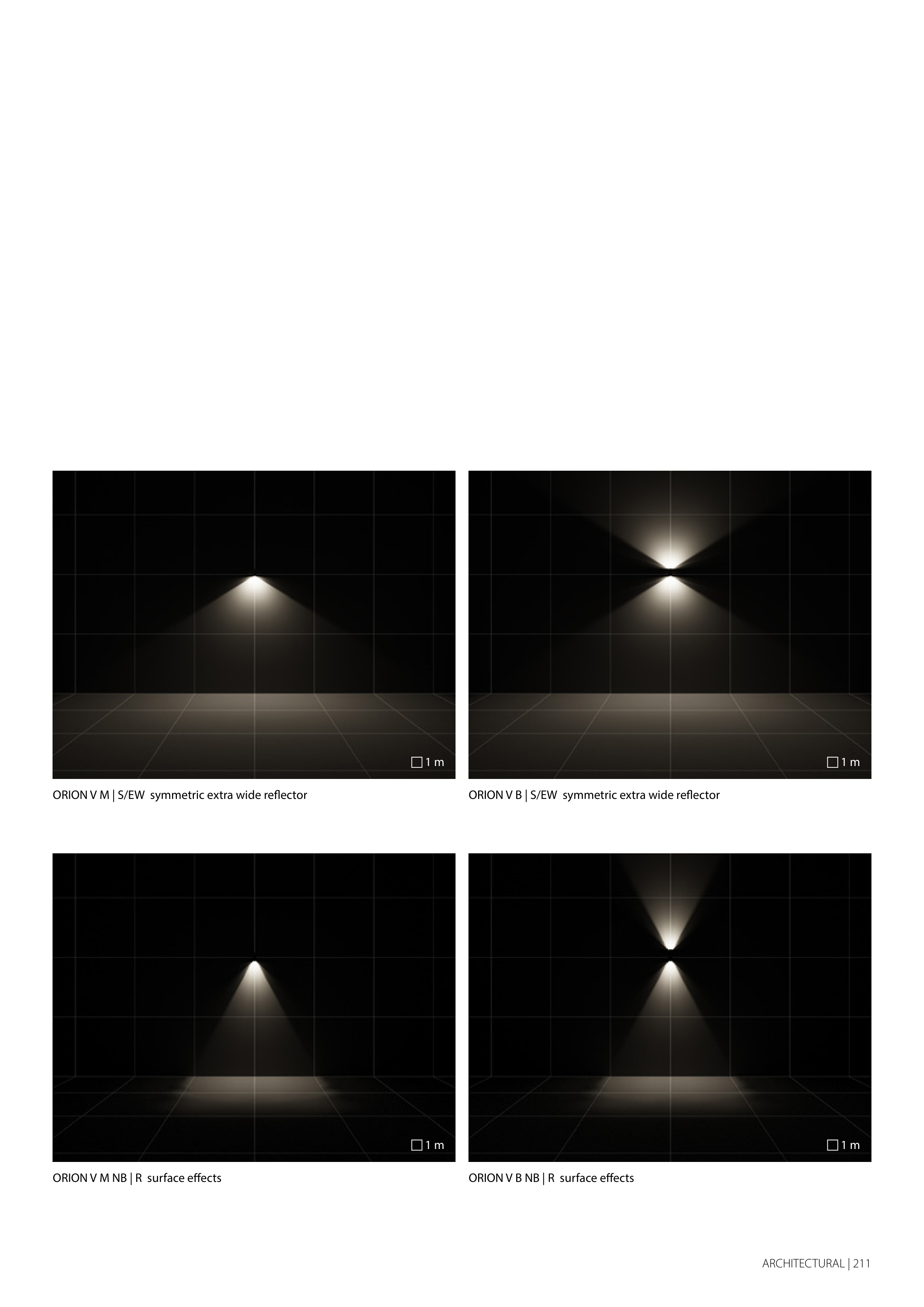 ARCHITECTURAL | 211 ORION V M NB | R surface effects ORION V M | S/EW symmetric extra wide reflector ORION V B NB | R surface effects ORION V B | S/EW symmetric extra wide reflector 1 m 1 m 1 m 1 m
