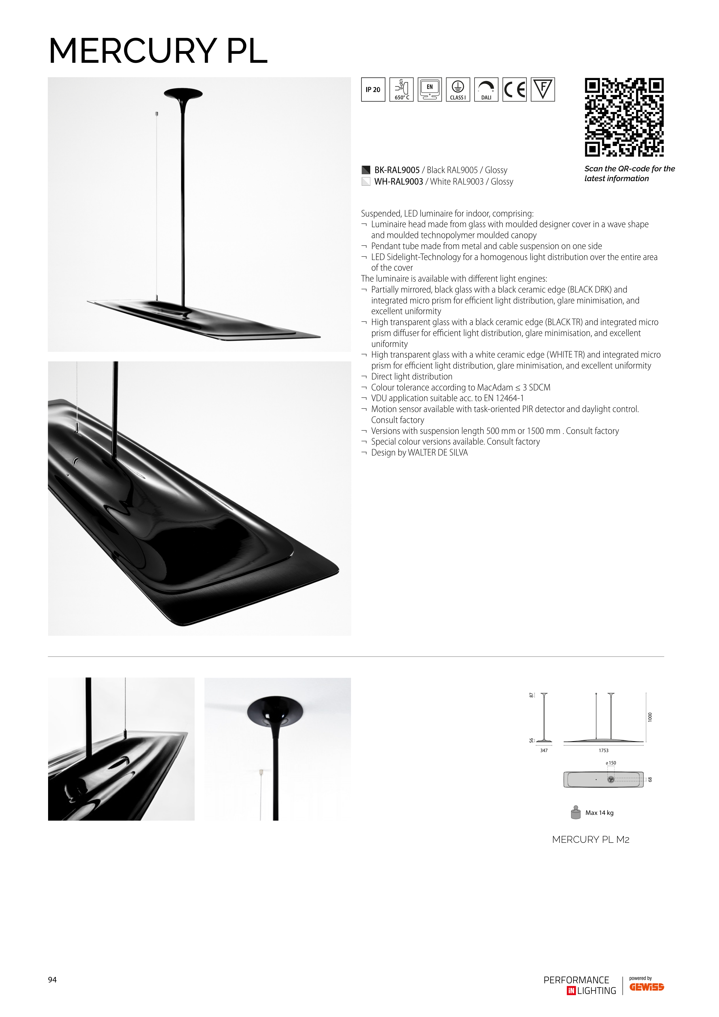 The luminaire is available with different light engines: