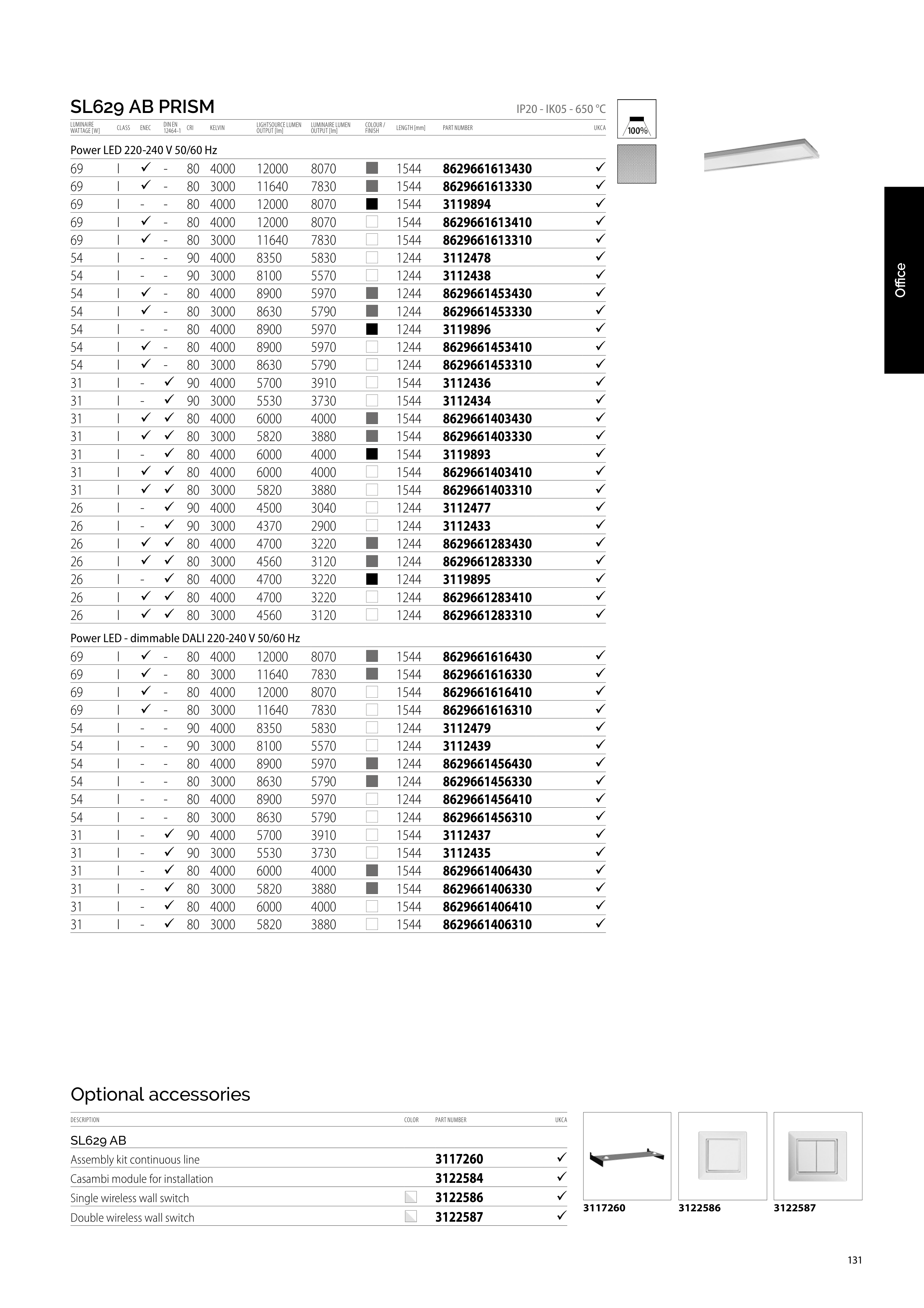 IP20 - IK05 - 650 °C