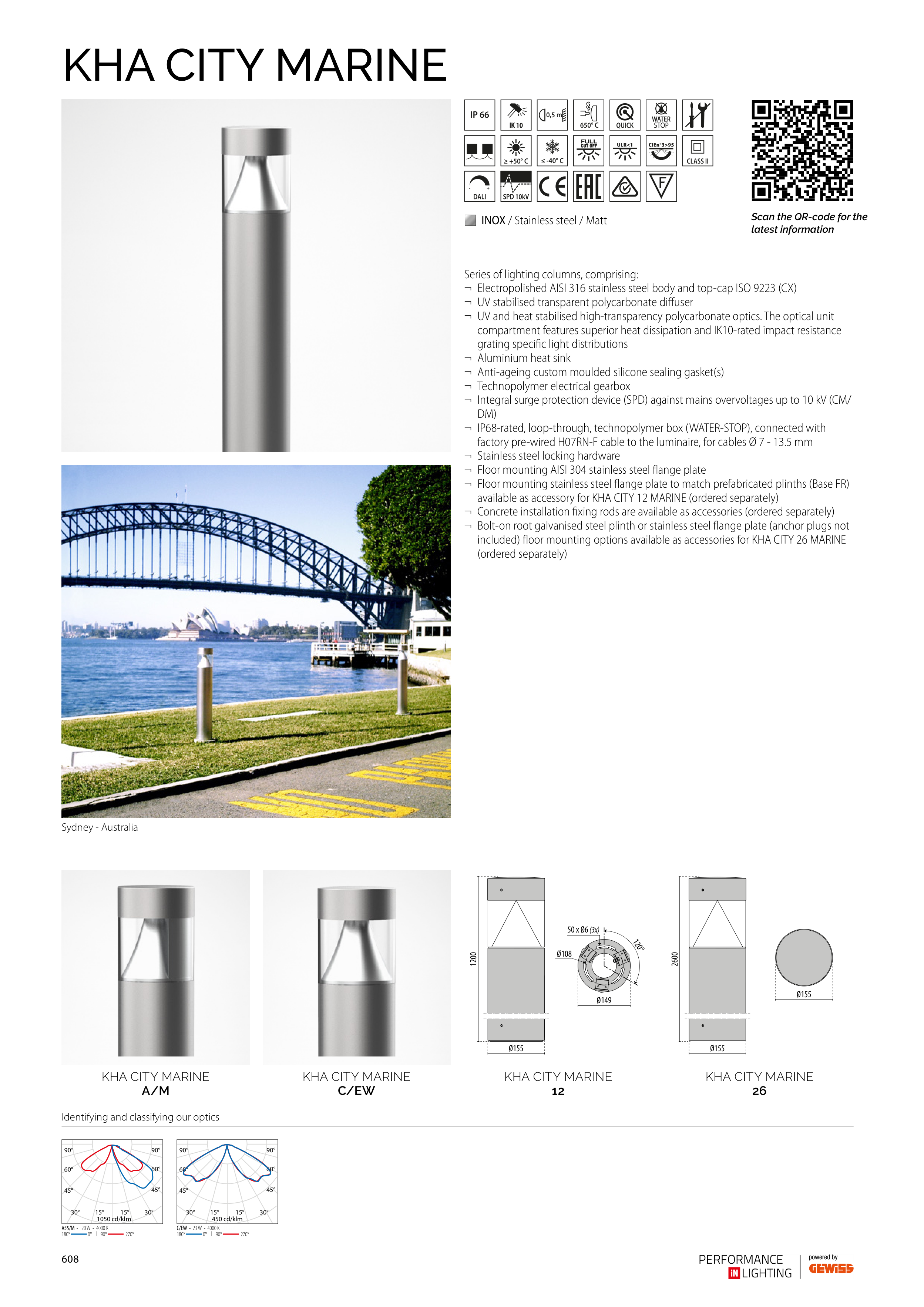 ¬ UV and heat stabilised high-transparency polycarbonate optics. The optical unit