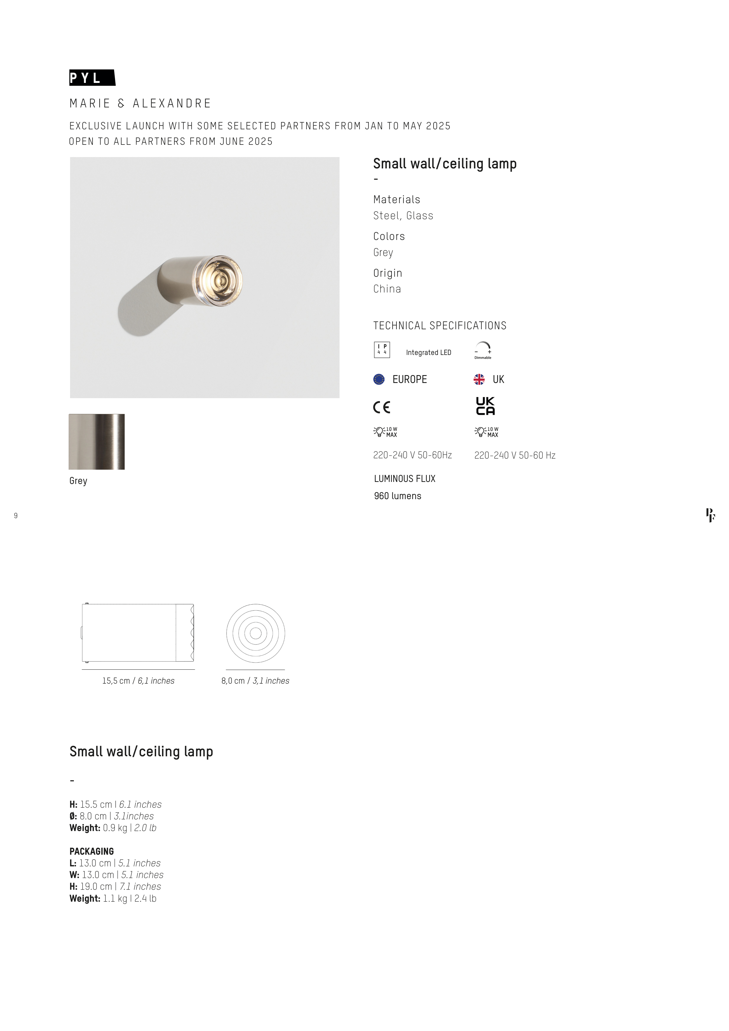 Small wall/ceiling lamp