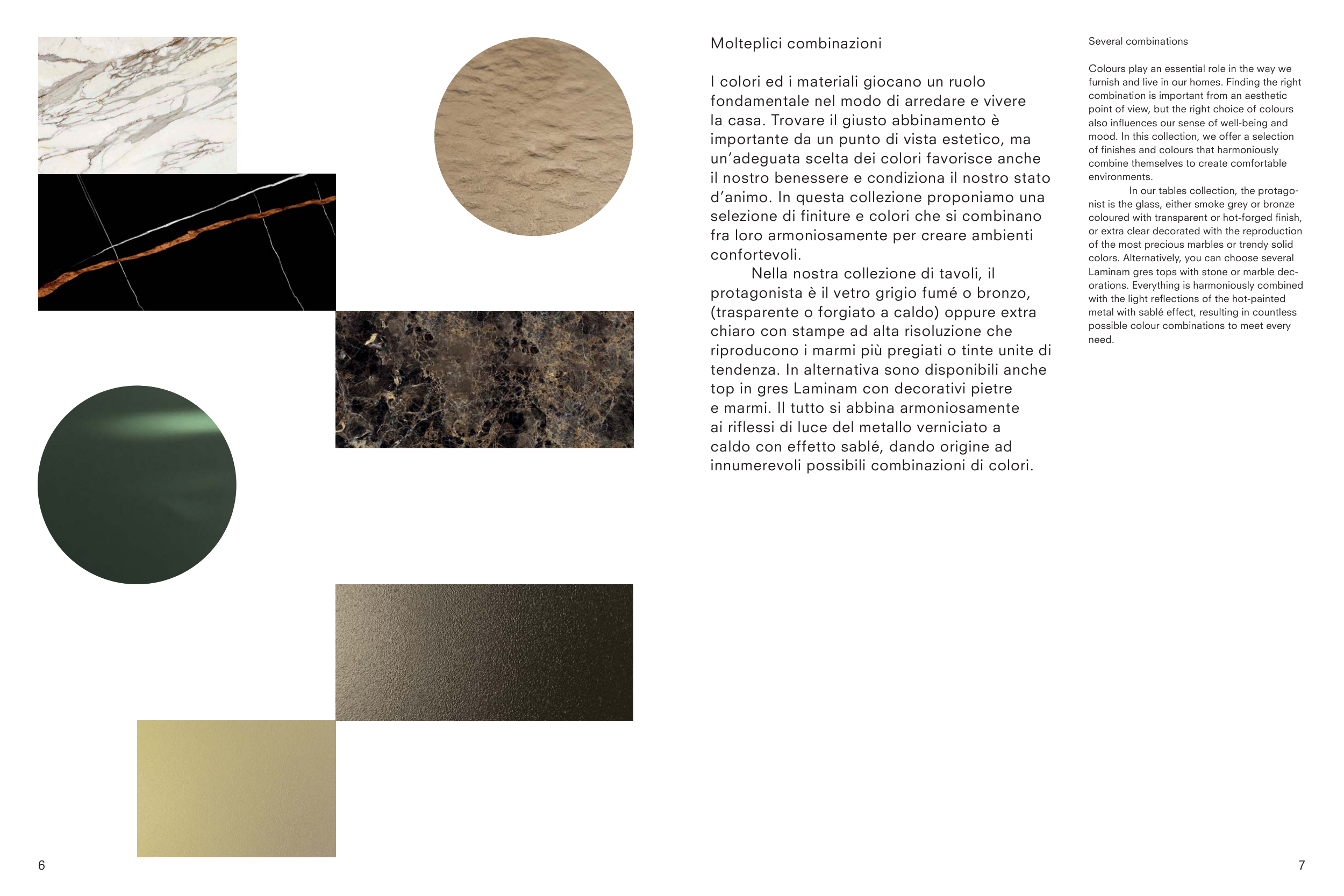 selezione di finiture e colori che si combinano