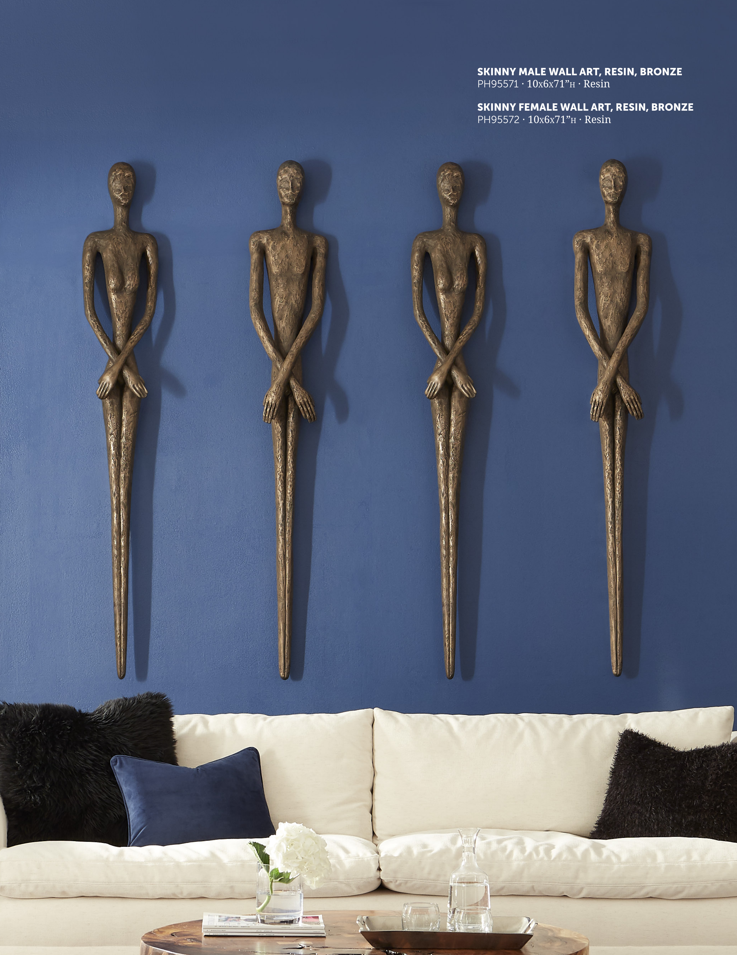 SKINNY MALE WALL ART, RESIN, BRONZE