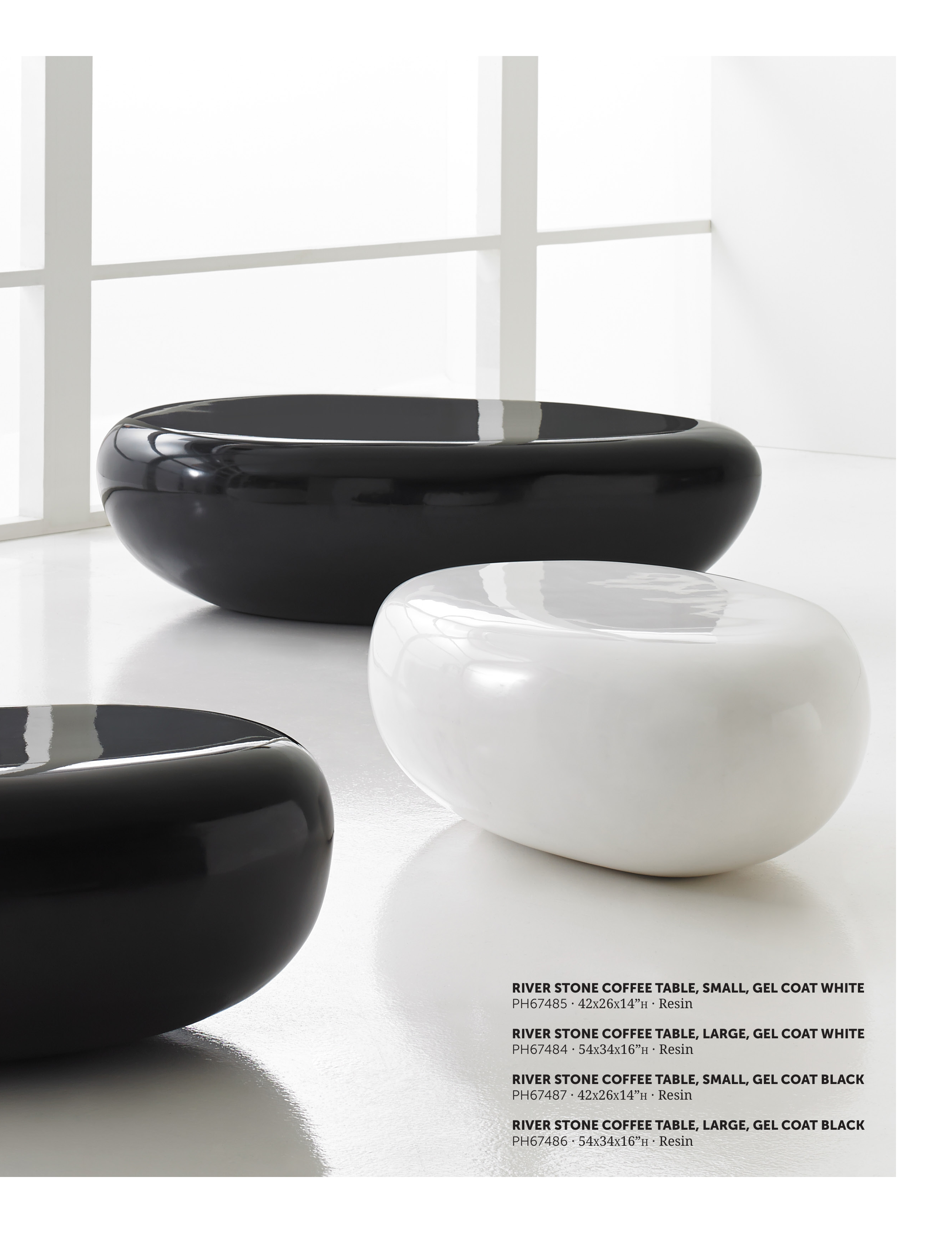 RIVER STONE COFFEE TABLE, SMALL, GEL COAT BLACK