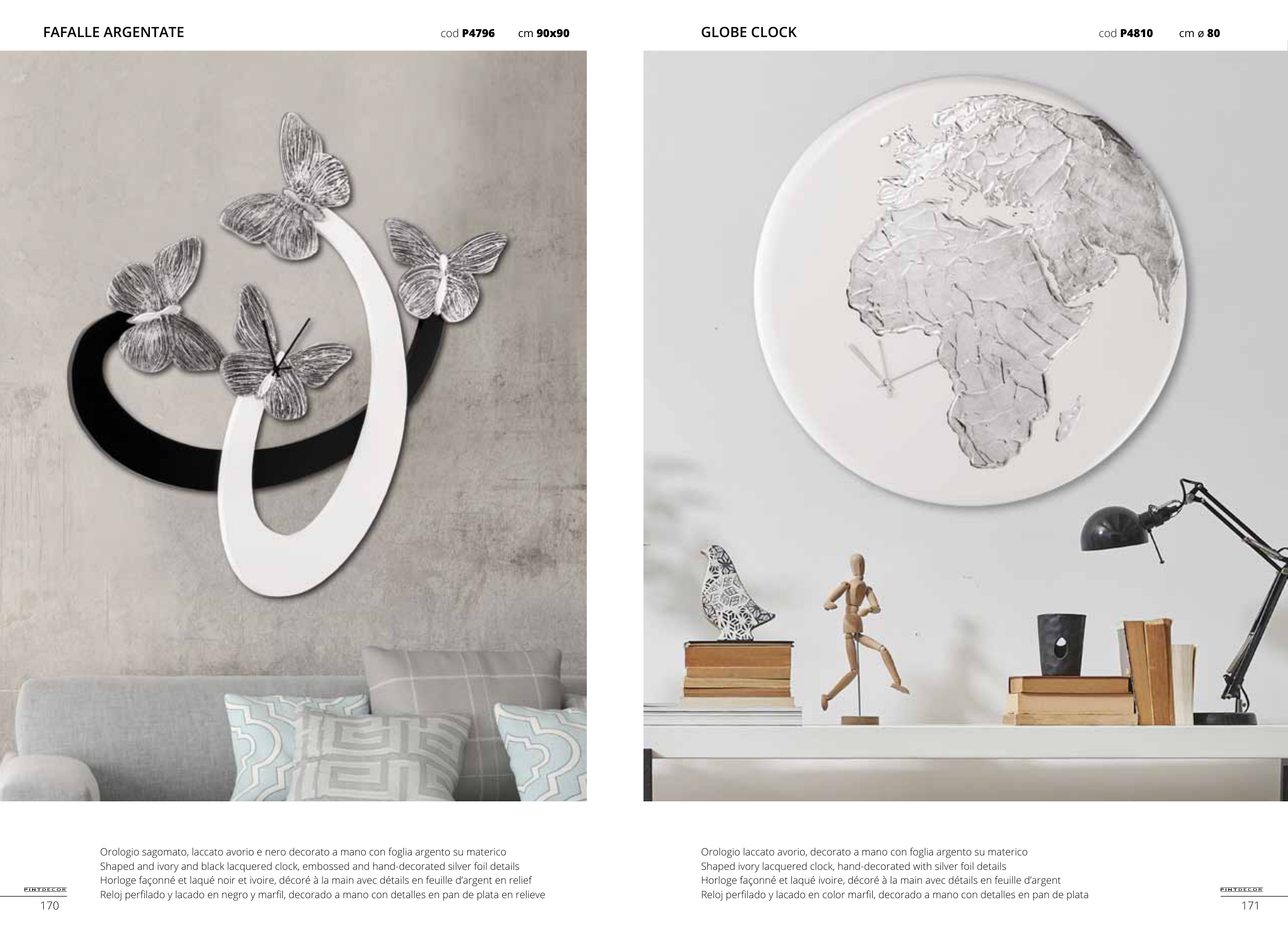 Orologio laccato avorio, decorato a mano con foglia argento su materico