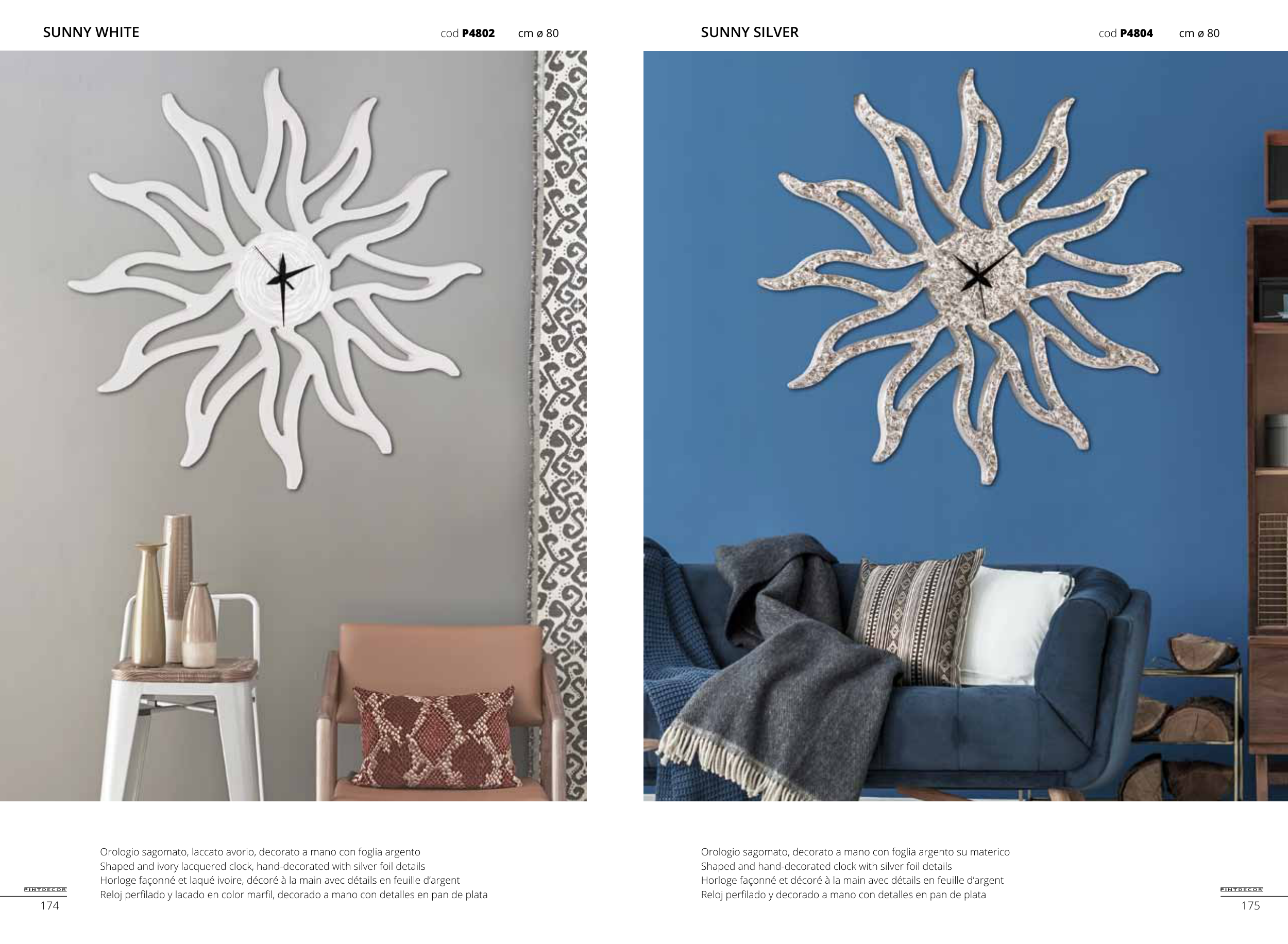 Orologio sagomato, decorato a mano con foglia argento su materico